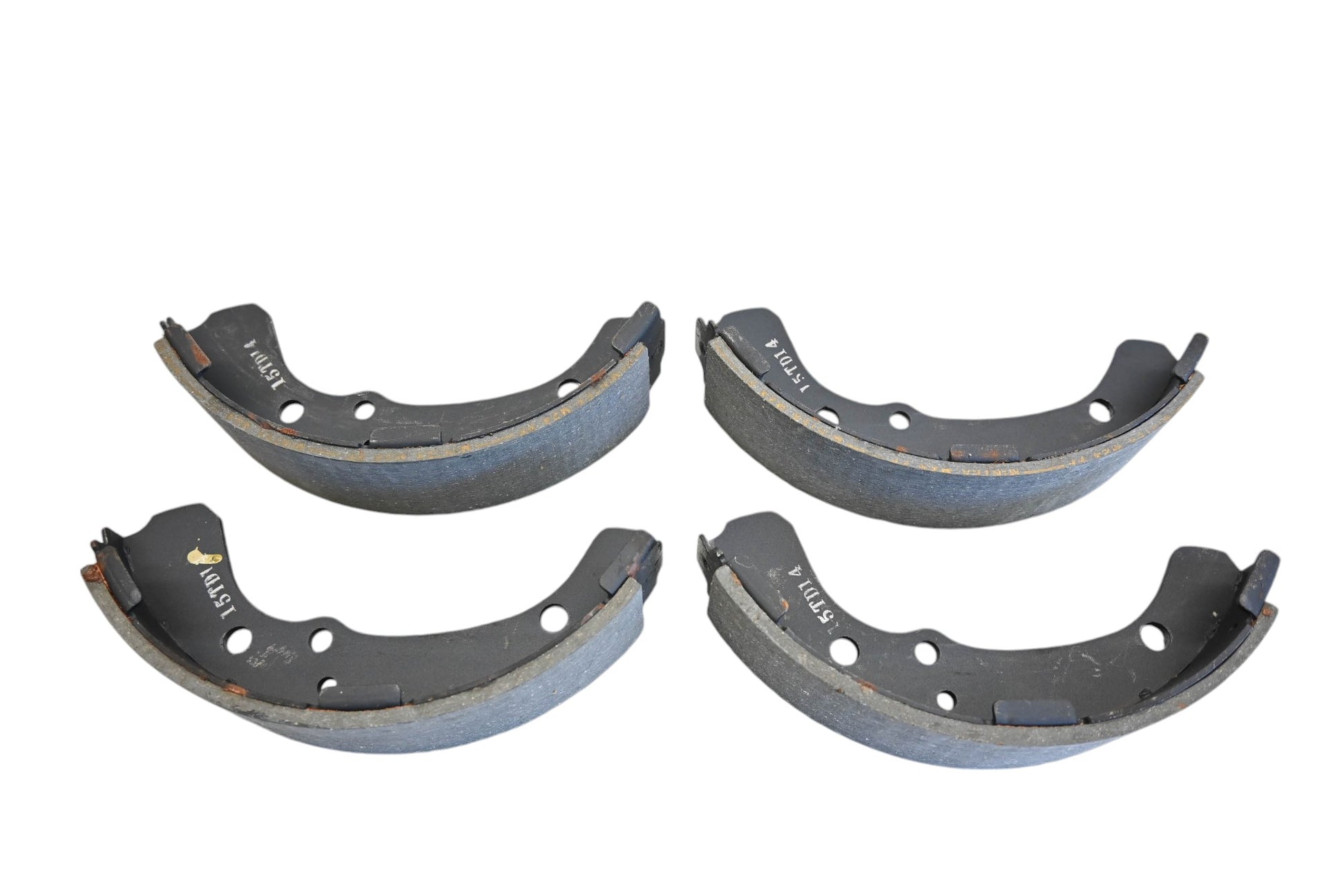 Remanufactured 72-74 Toyota Hilux Front Drum Brake Shoe Kit is new and in good condition, not in original packaging. Shows signs of wear from use. Rust present.