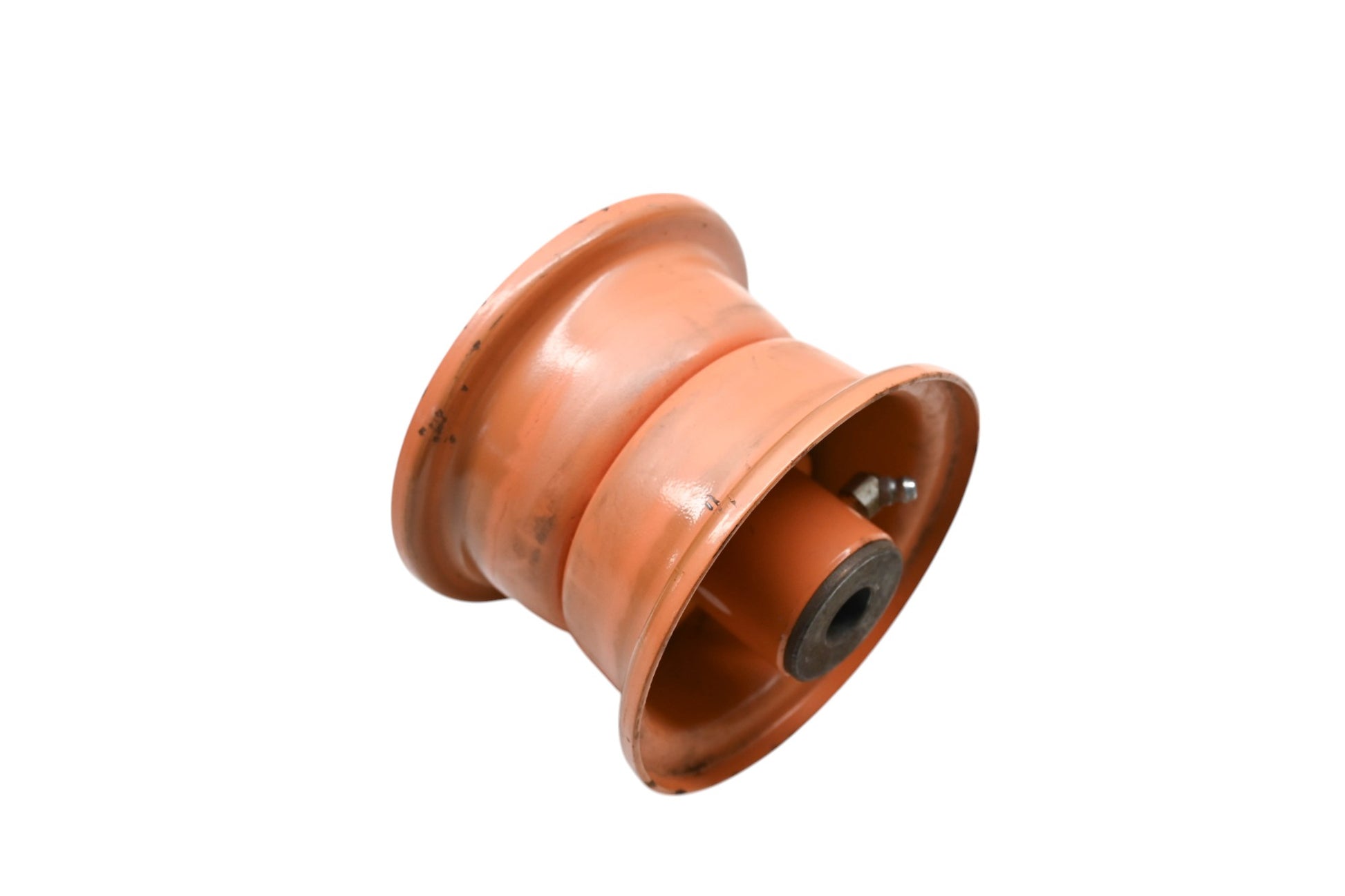 4-3/4" x 3-3/8" 2 Piece Rim Assembly is used and in good condition, not in original packaging. Shows signs of wear from use. Rust present. Center bearing has a 5/8" diameter.