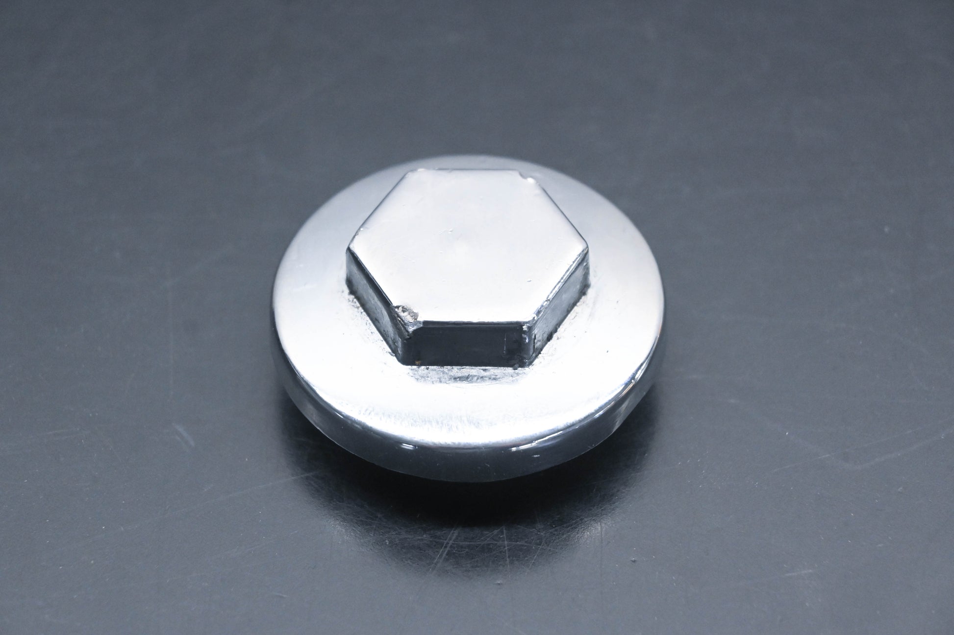 Chrome Tappet Cap 23mm Hex is used and in good condition, not in original packaging. Shows signs of wear. Hex on cap is 23mm. Cap looks to fit a 35mm hole. Comes with O-ring.