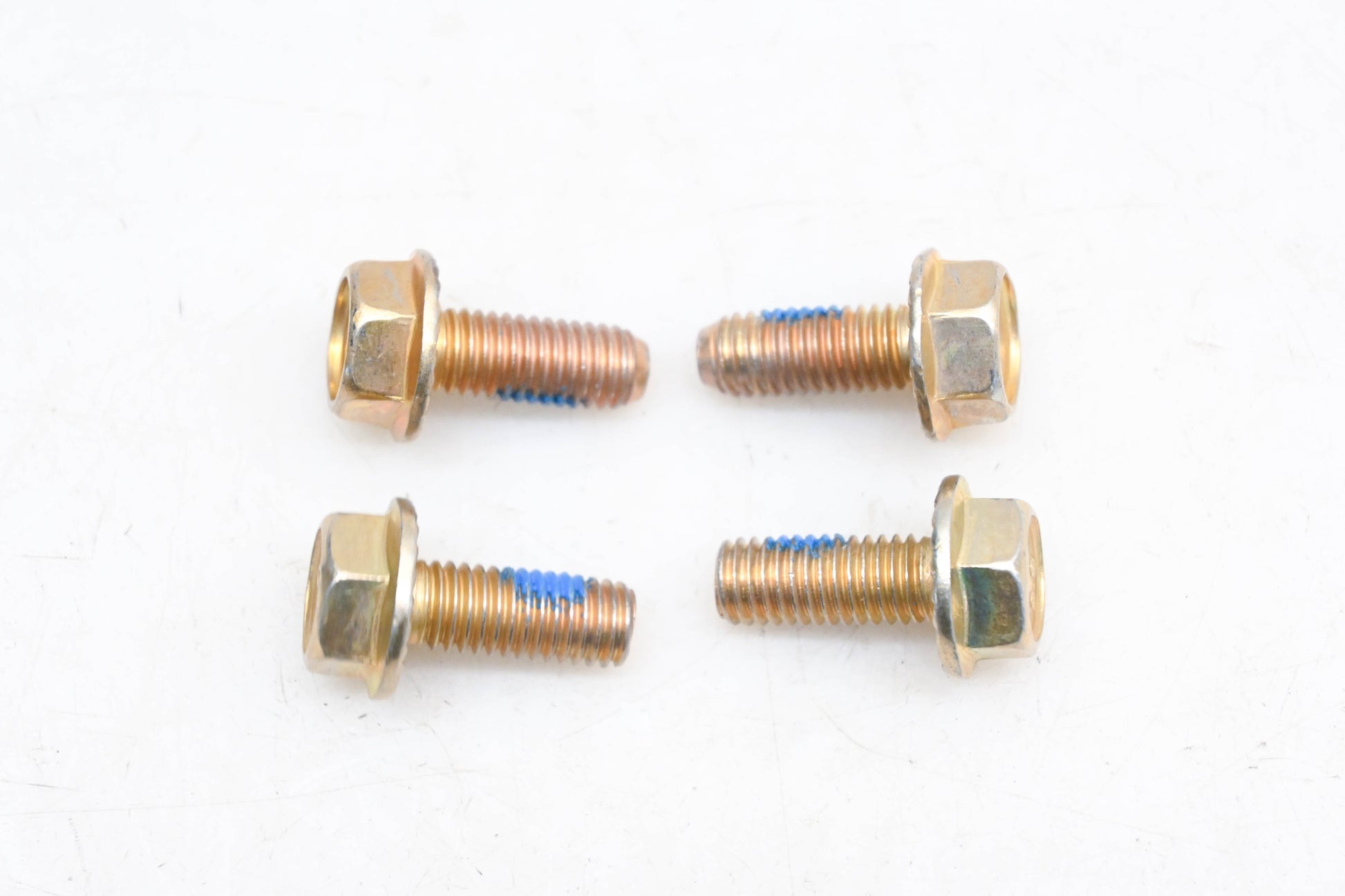 4 Gold Hex Serrated Flange M8-1.25 x 20 Screws are new and in excellent condition, not in original packaging. Screws are 8.8 grade.