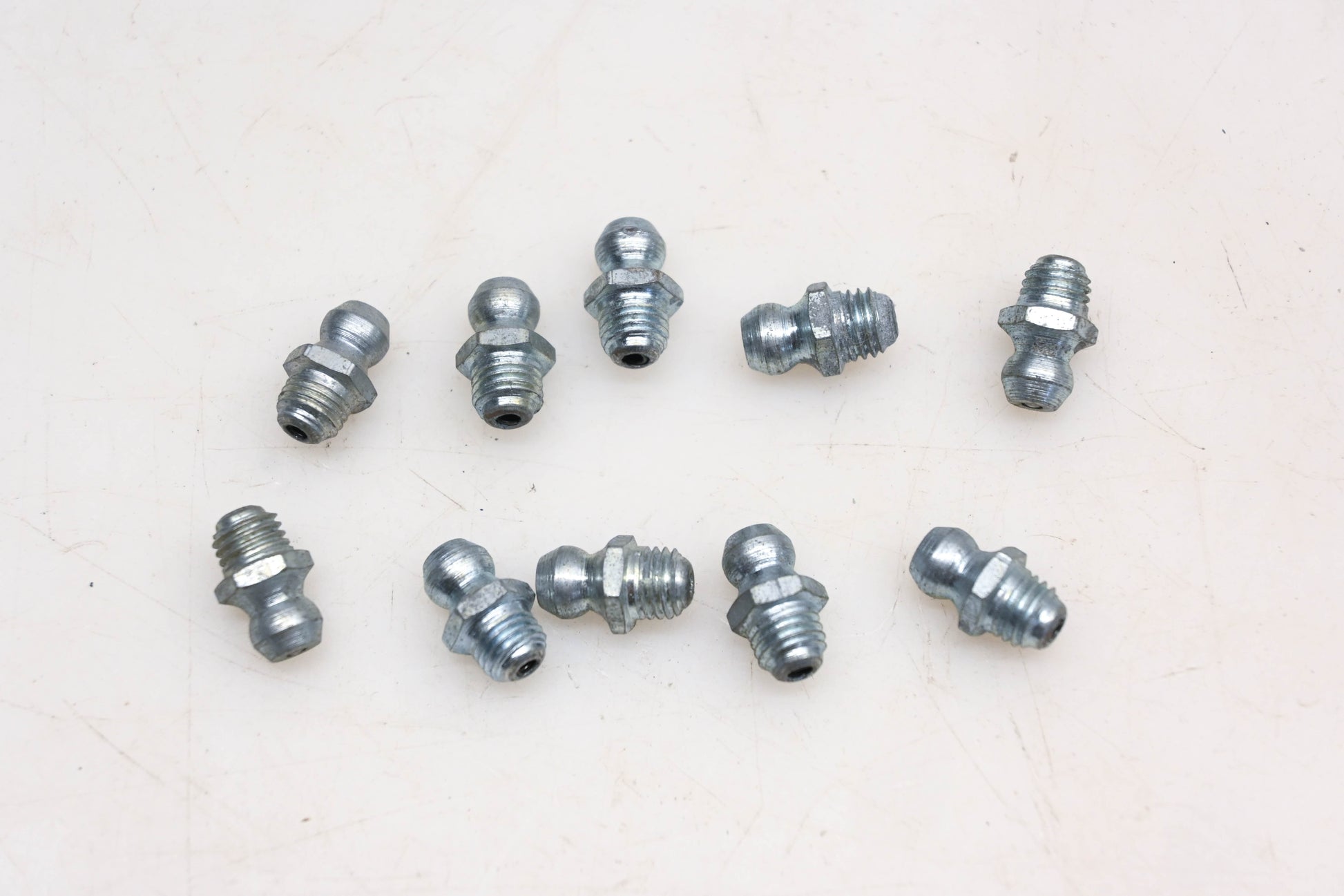 10 Steel 5/16" Hex 1/4-28 Grease Fittings are new and in good condition, not in original packaging. Shows signs of shelf wear.