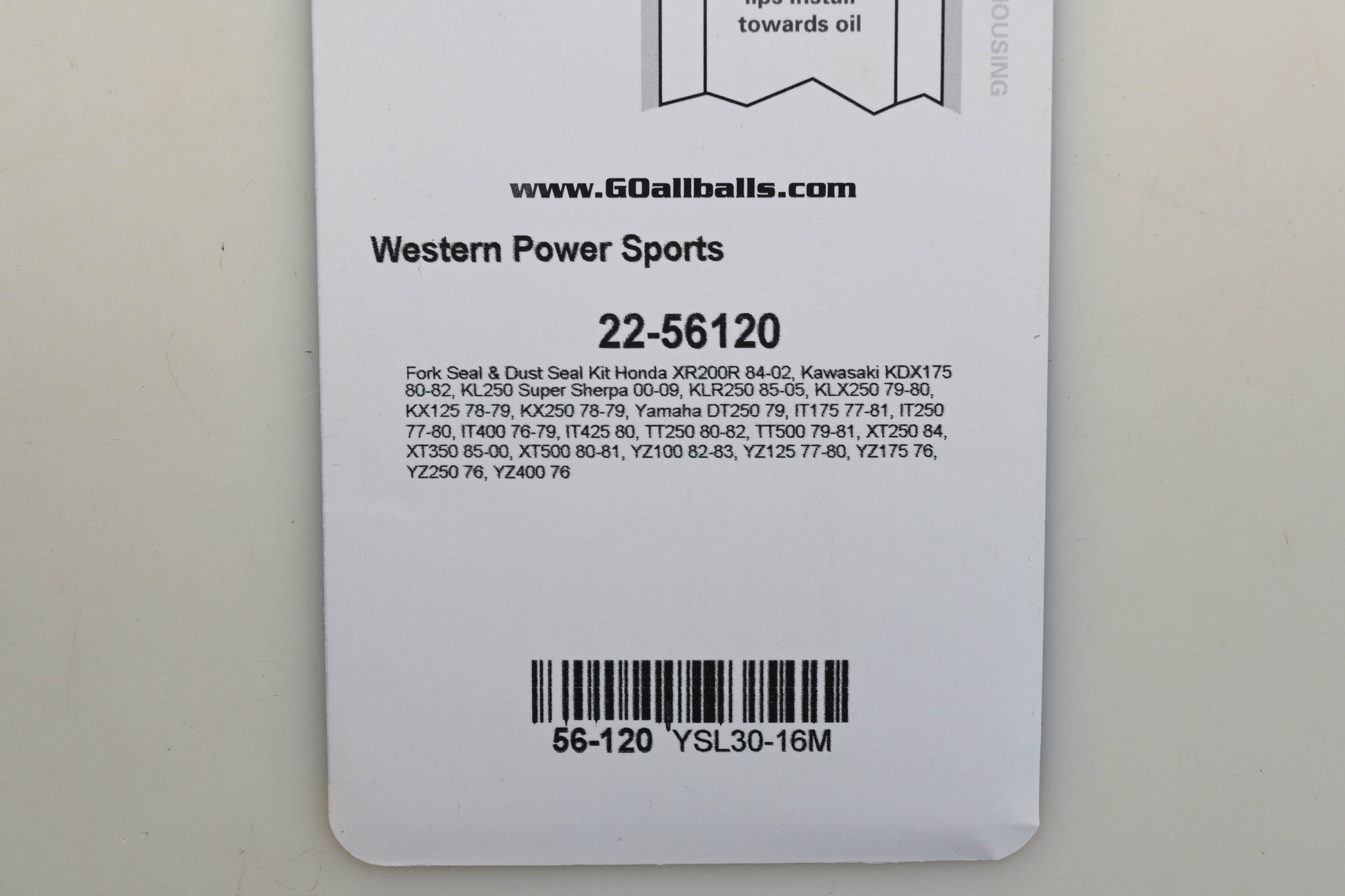 All Balls 22-56120 Fork Seal Wiper Kit Qty 1 NOS