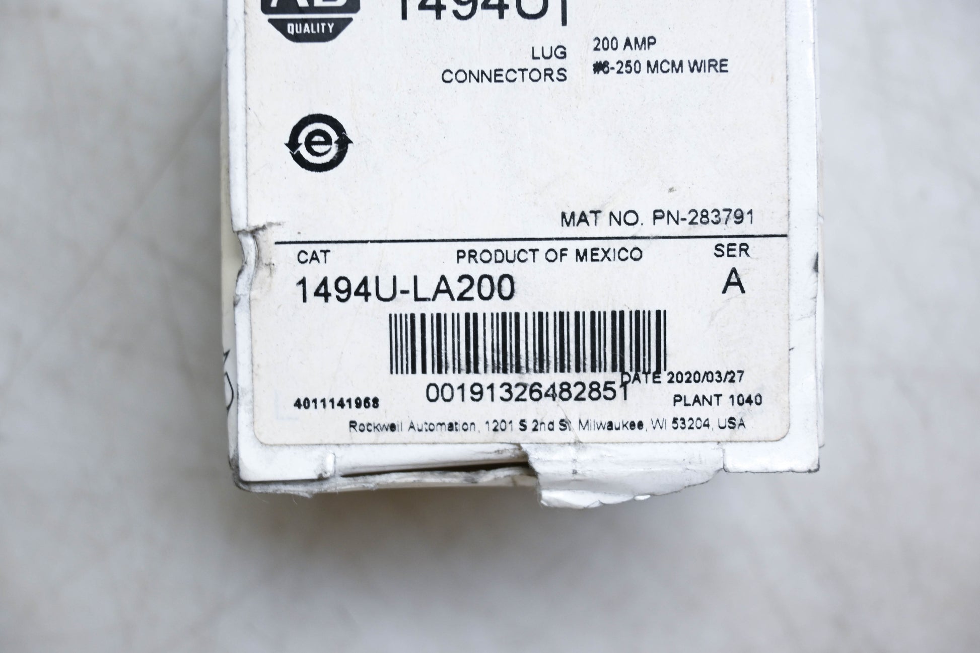 Allen-Bradley 1494U-LA200 Series A Lug Connector Kit NOS