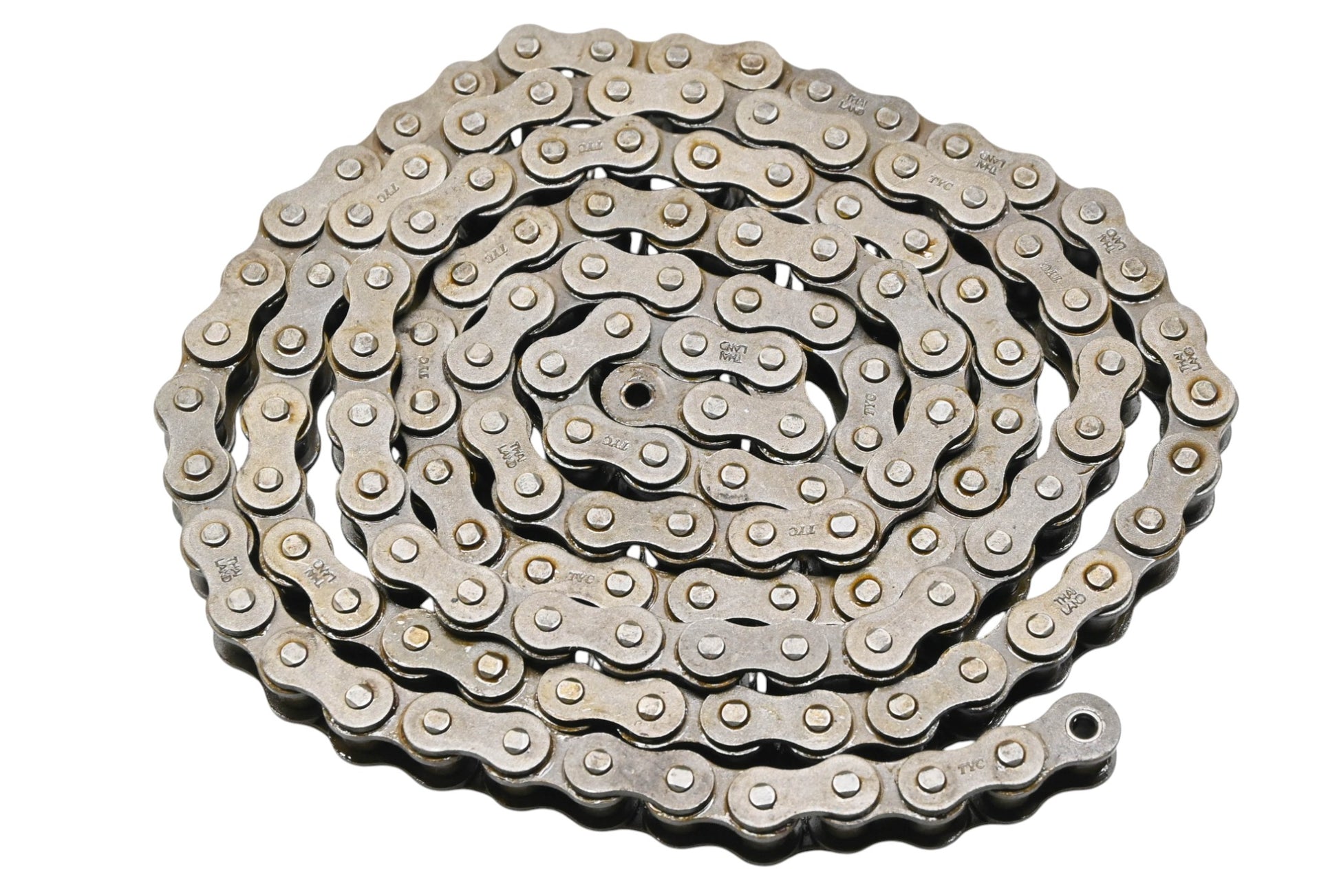 7' Roller Chain 5/8" x 3/8" is new and in good condition, in original packaging. Shows signs of shelf wear. Factory grease has dried out.