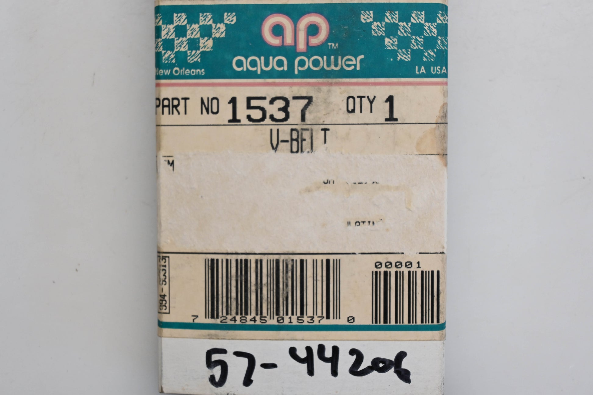 Aqua Power 57-44206, 1537, 15436 V-Belt Qty 1 NOS