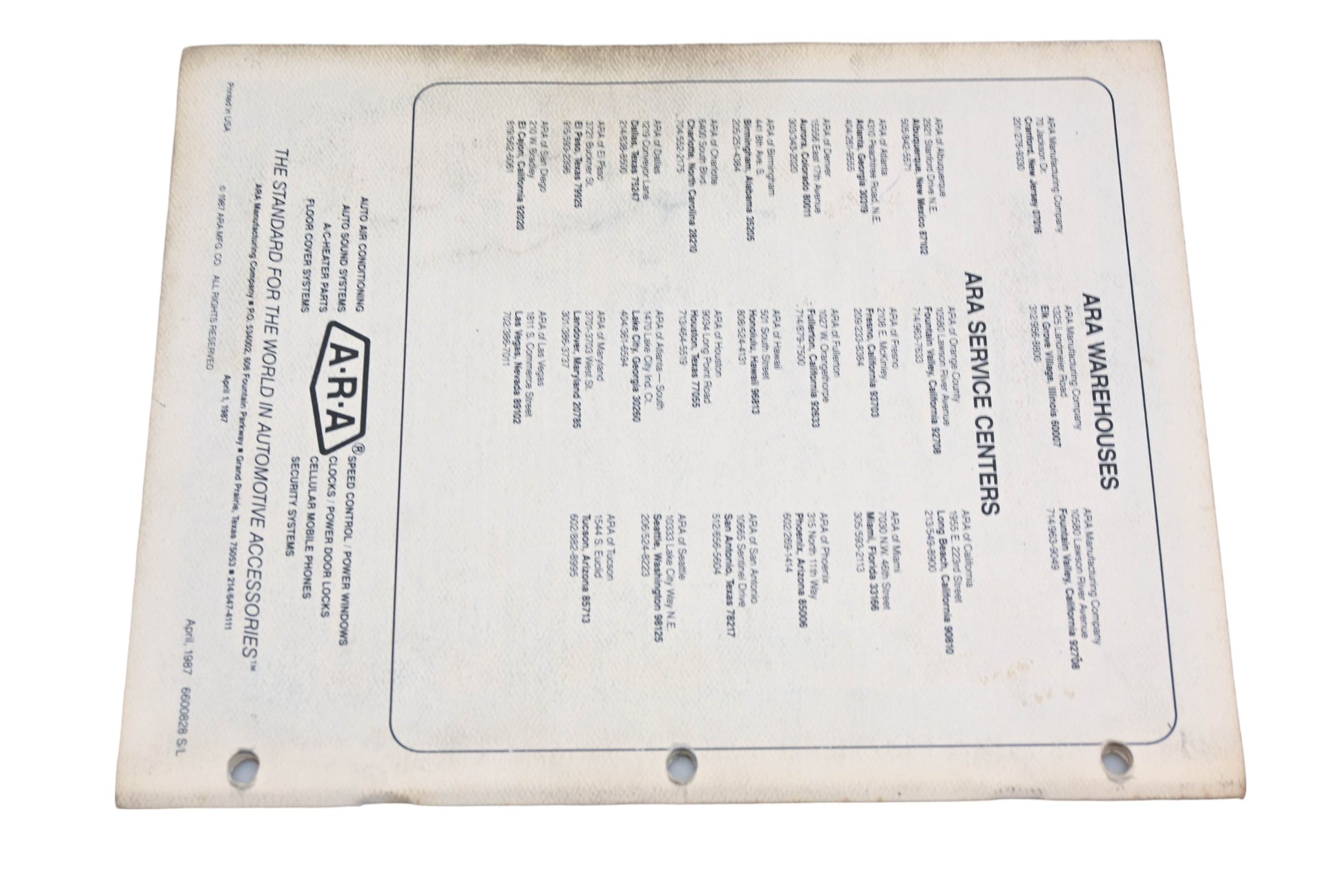 ARA 6600828 S/L, 6600828S/L 1987 Auto Air Conditioning Application Guide