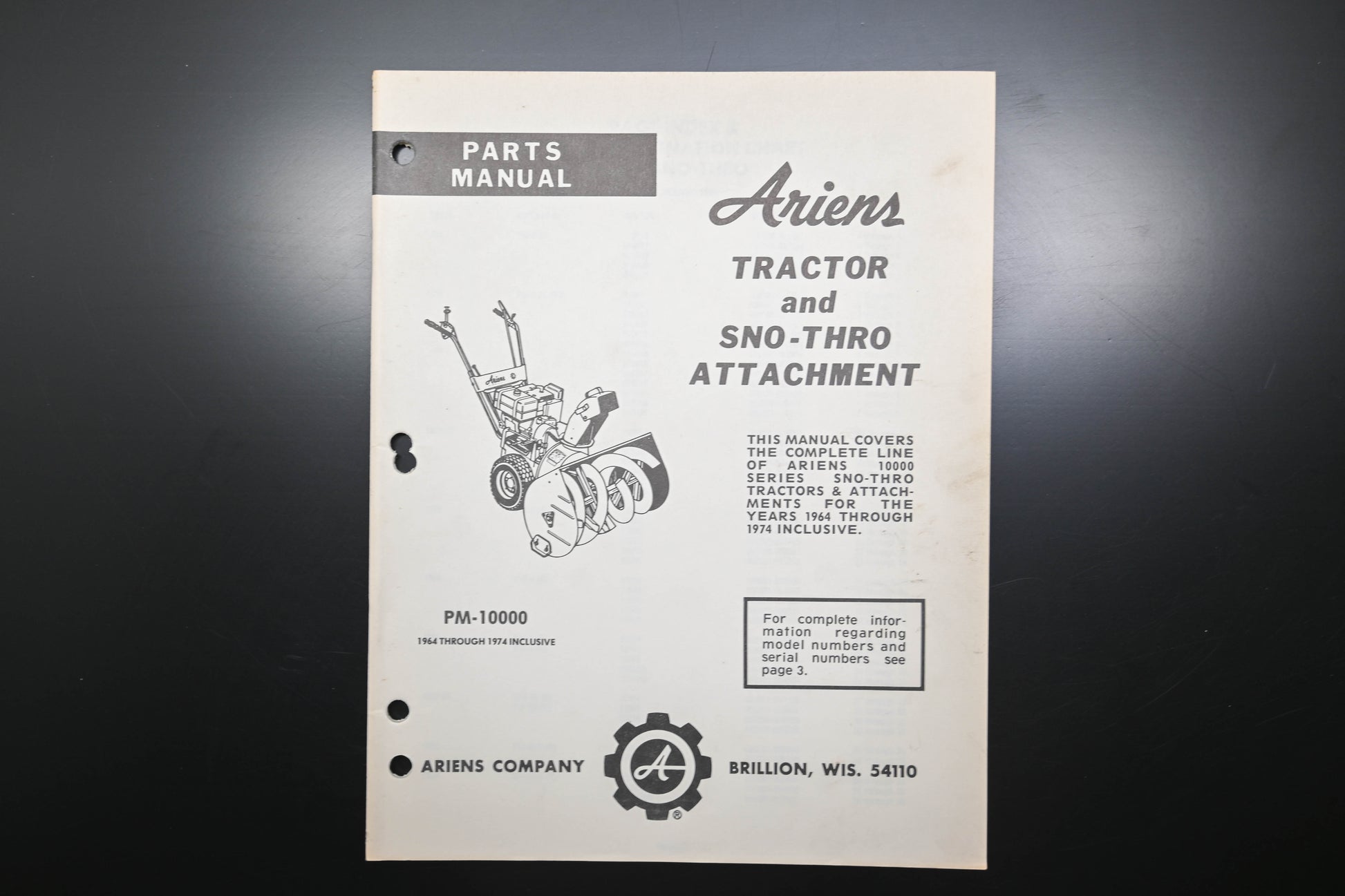 Ariens PM-10000 Tractor & Sno-Thro Attachment Parts Manual