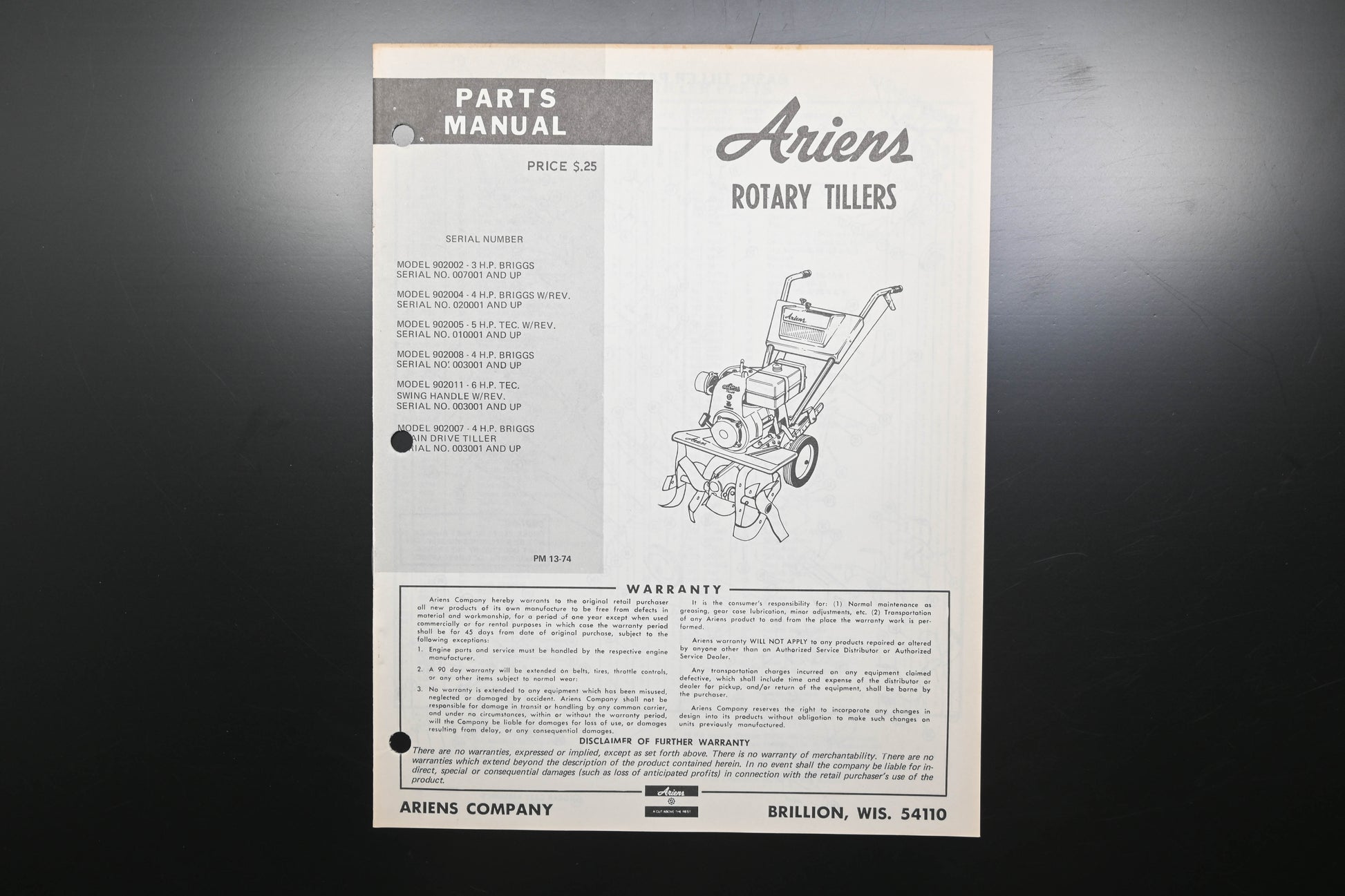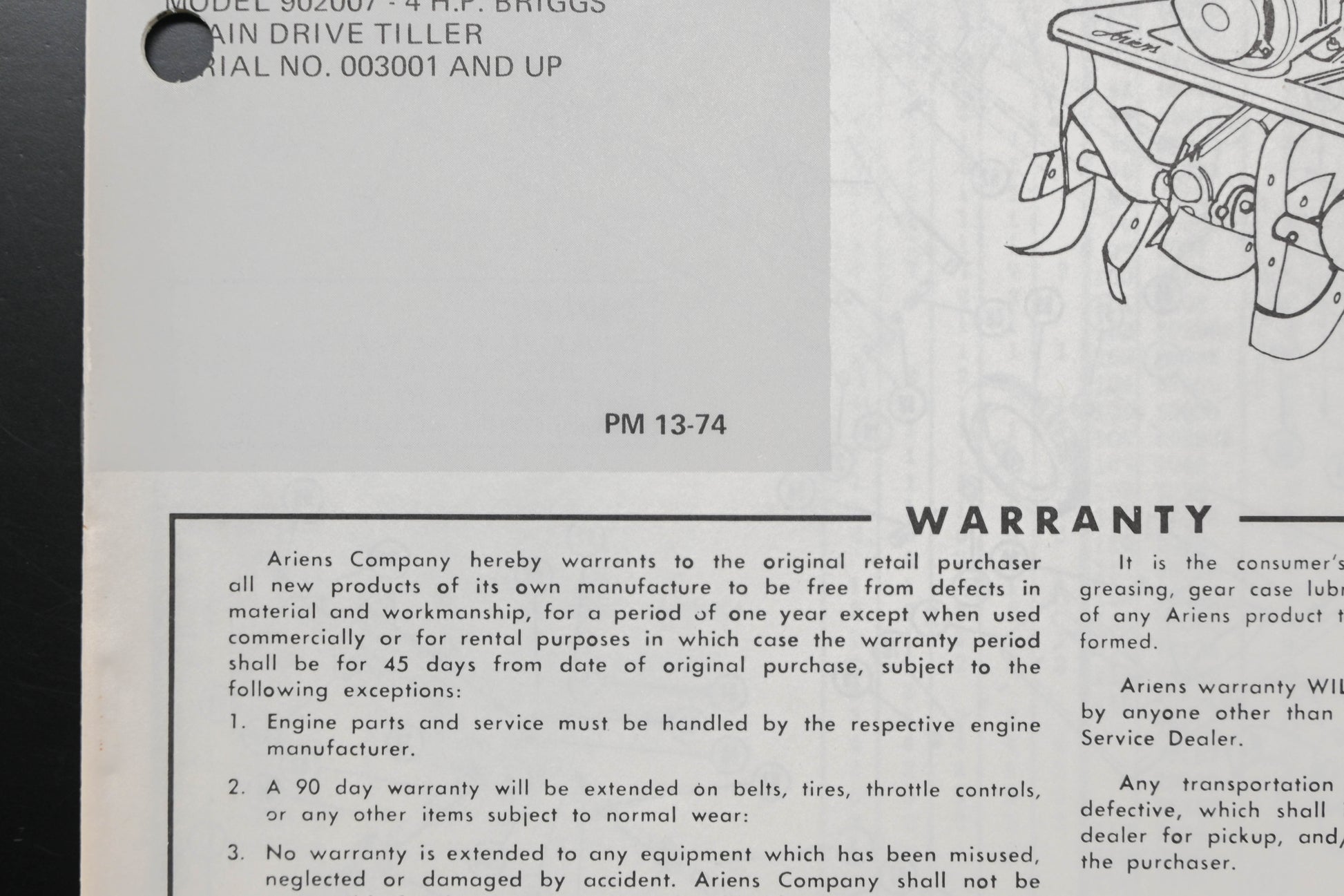 Ariens PM-13-74 Rotary Tiller Parts Manual
