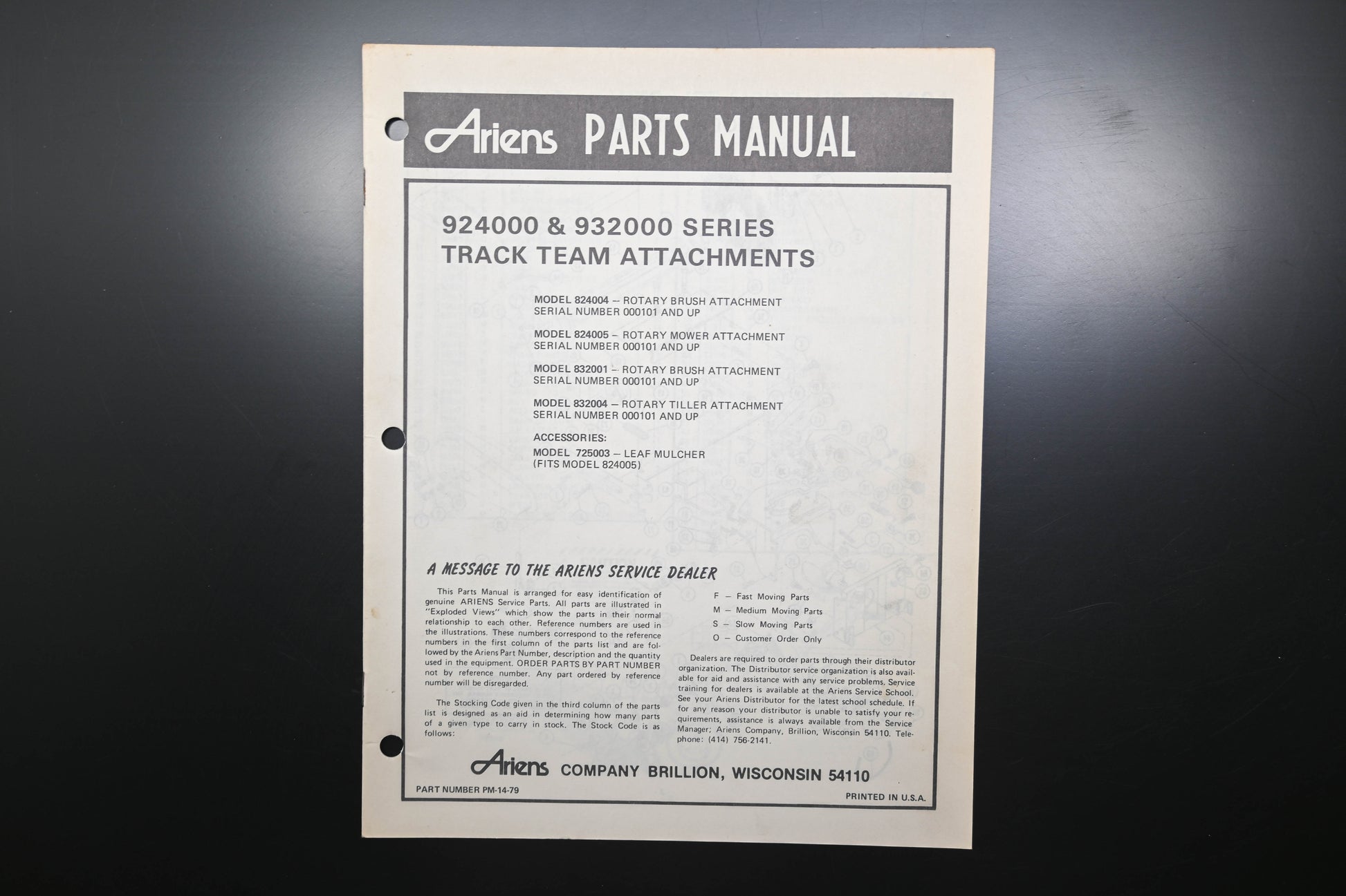 Ariens PM-14-79 924000 & 932000 Track Team Attachments Parts Manual