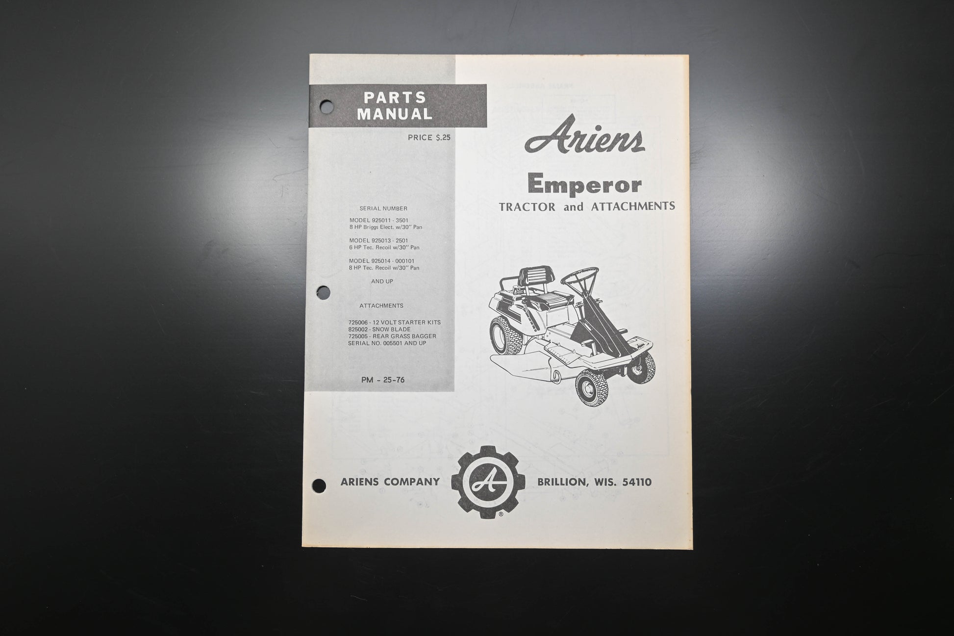 Ariens PM-25-76 Emperor Tractor & Attachments Parts Manual