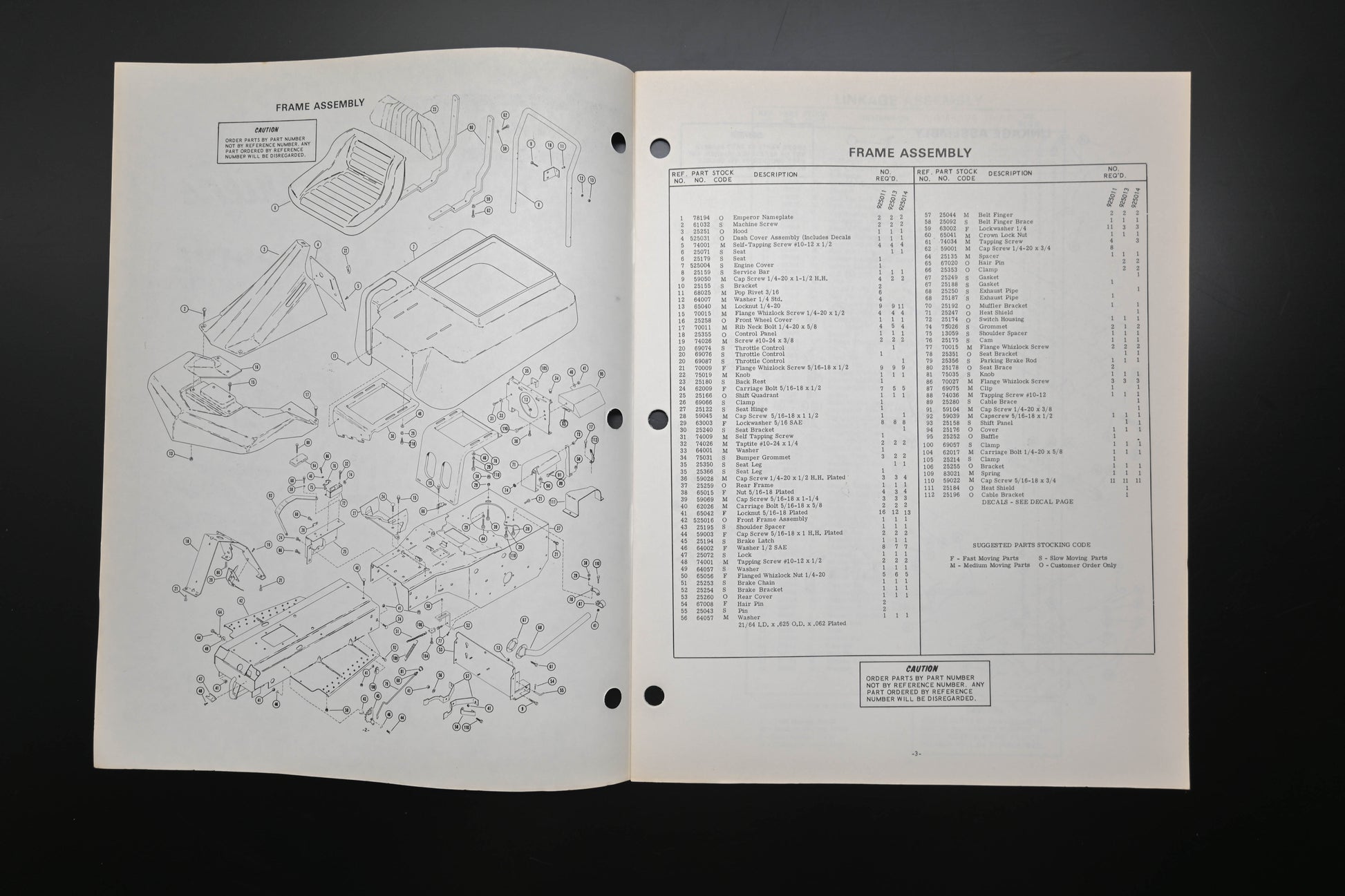 Emperor Tractor & Attachments Parts Manual is used and in good condition, not in original packaging. Shows signs of wear from use. Pages discolored & binding staples are rusted. Fingerprints present on a few pages.