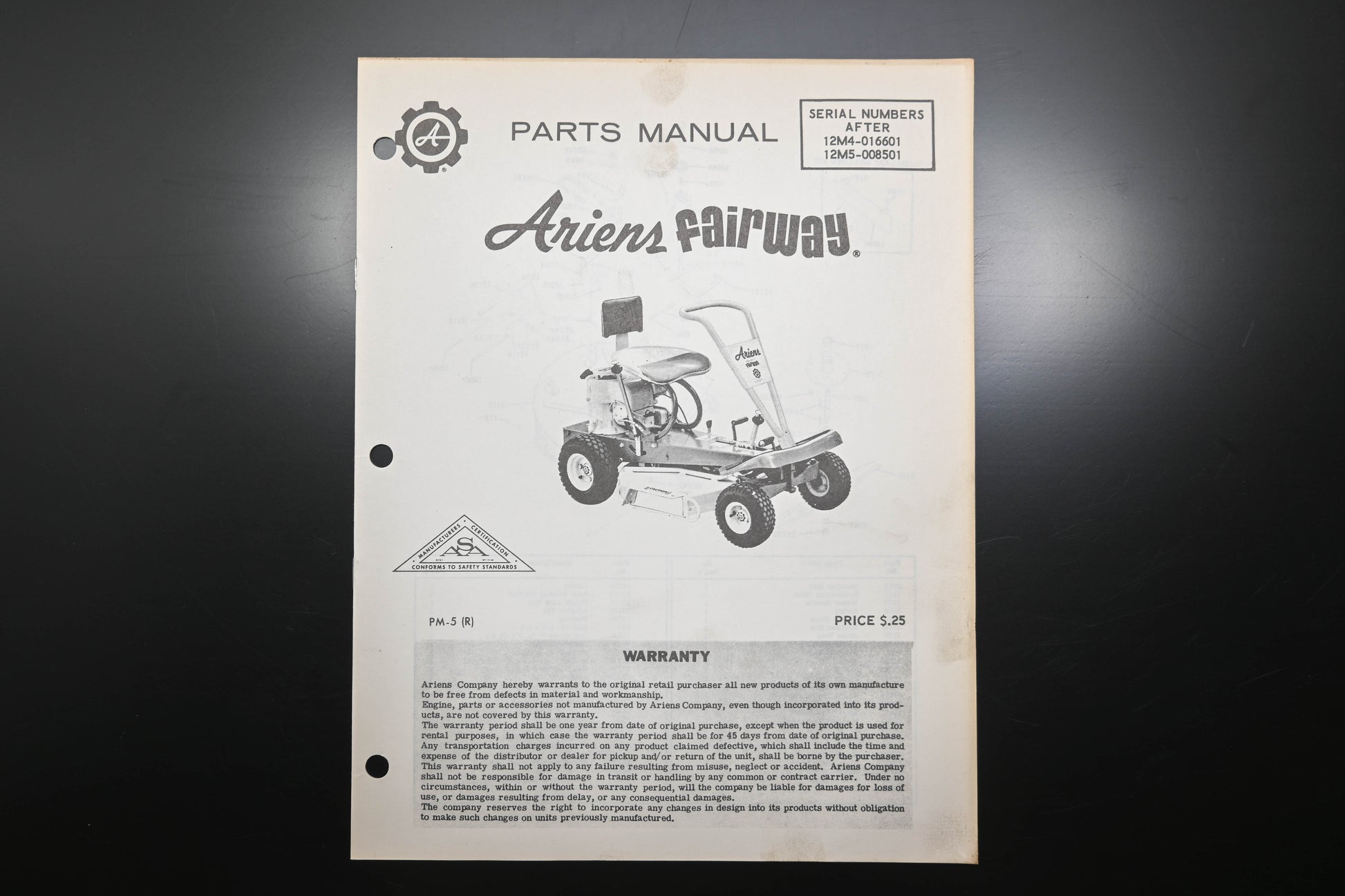 Ariens PM-5 R Fairway Lawn Mower Parts Manual