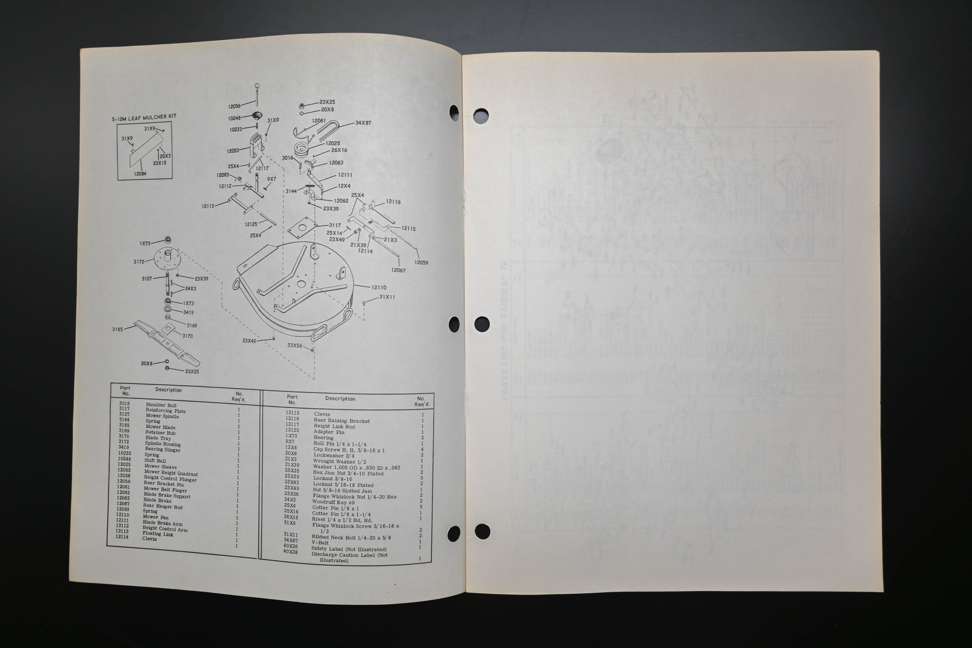 Fairway Lawn Mower Parts Manual is used and in good condition, not in original packaging. Shows signs of wear from use. Pages discolored & binding staples are rusted. Fingerprints present on front cover.