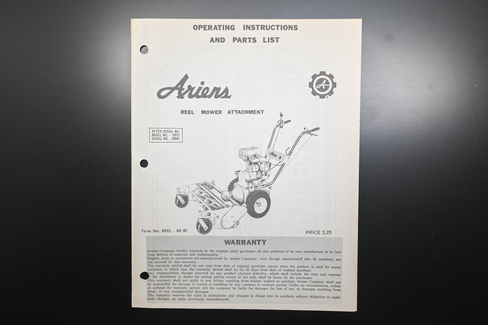 Ariens REEL-68 (R) Reel Mower Attachment Operating Instructions & Parts List