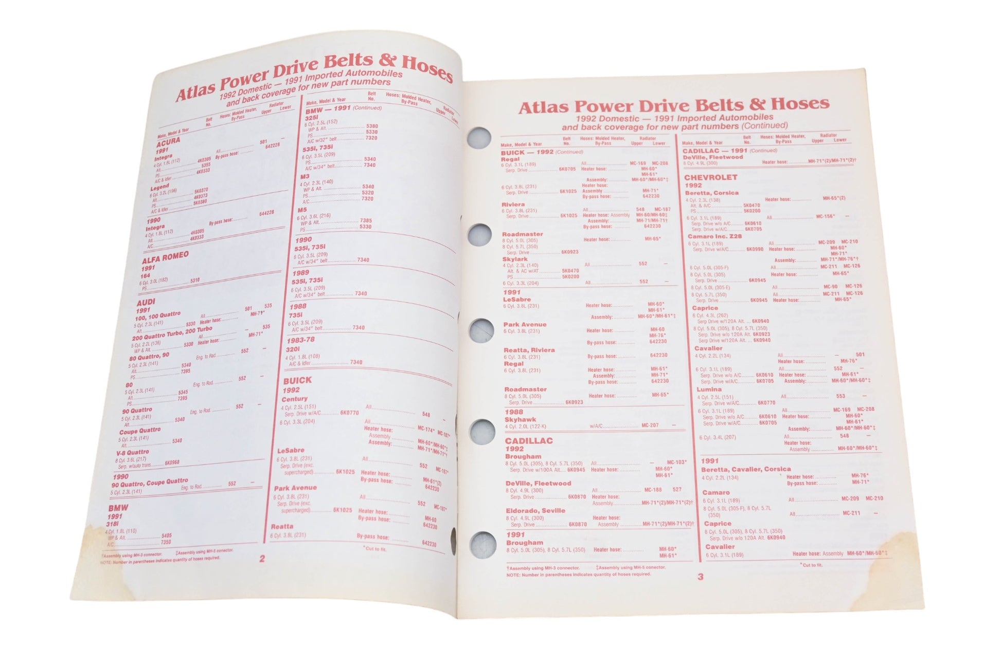 1992 Belt & Hose Application Supplement is used and in good condition, not in original packaging. Shows signs of wear from use.