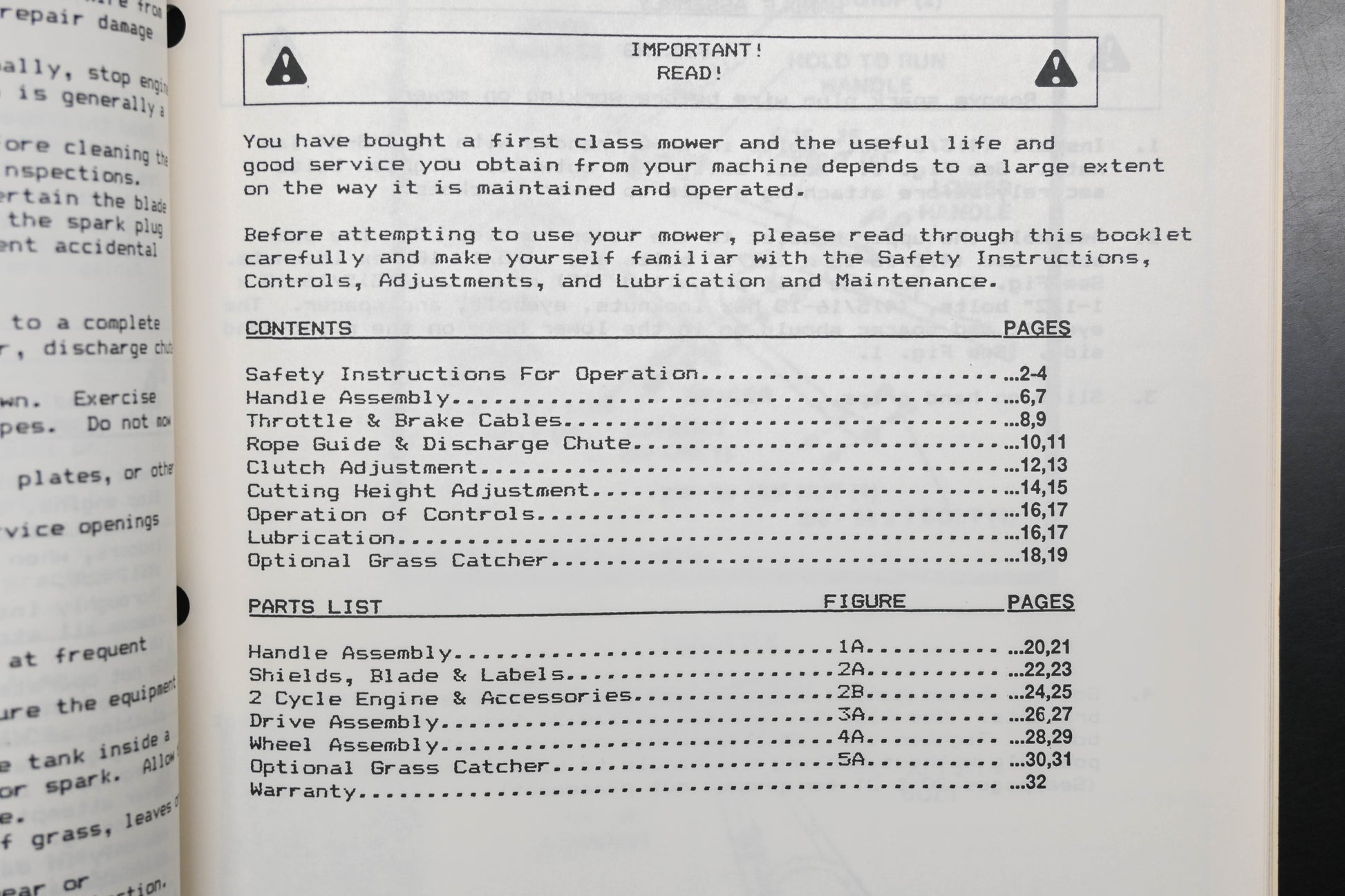 89 M21-4 Model Commercial Mower Technical Manual is used and in good condition, not in original packaging. Shows signs of wear from use. Writing and stains present on front cover. Fingerprints present on several pages.