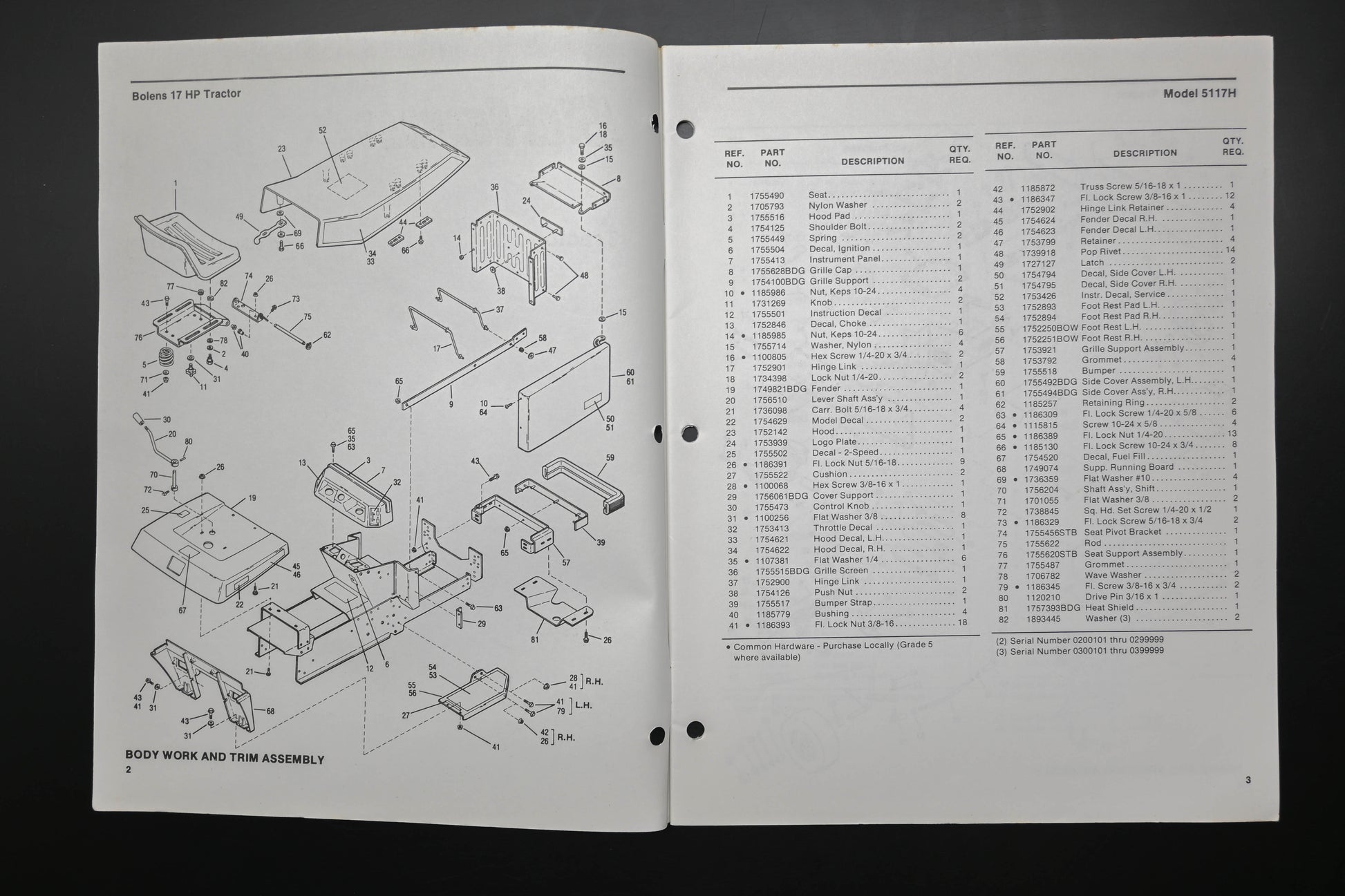 Bolens 176-0237, 1760237 Tractor Model 5117H Parts List