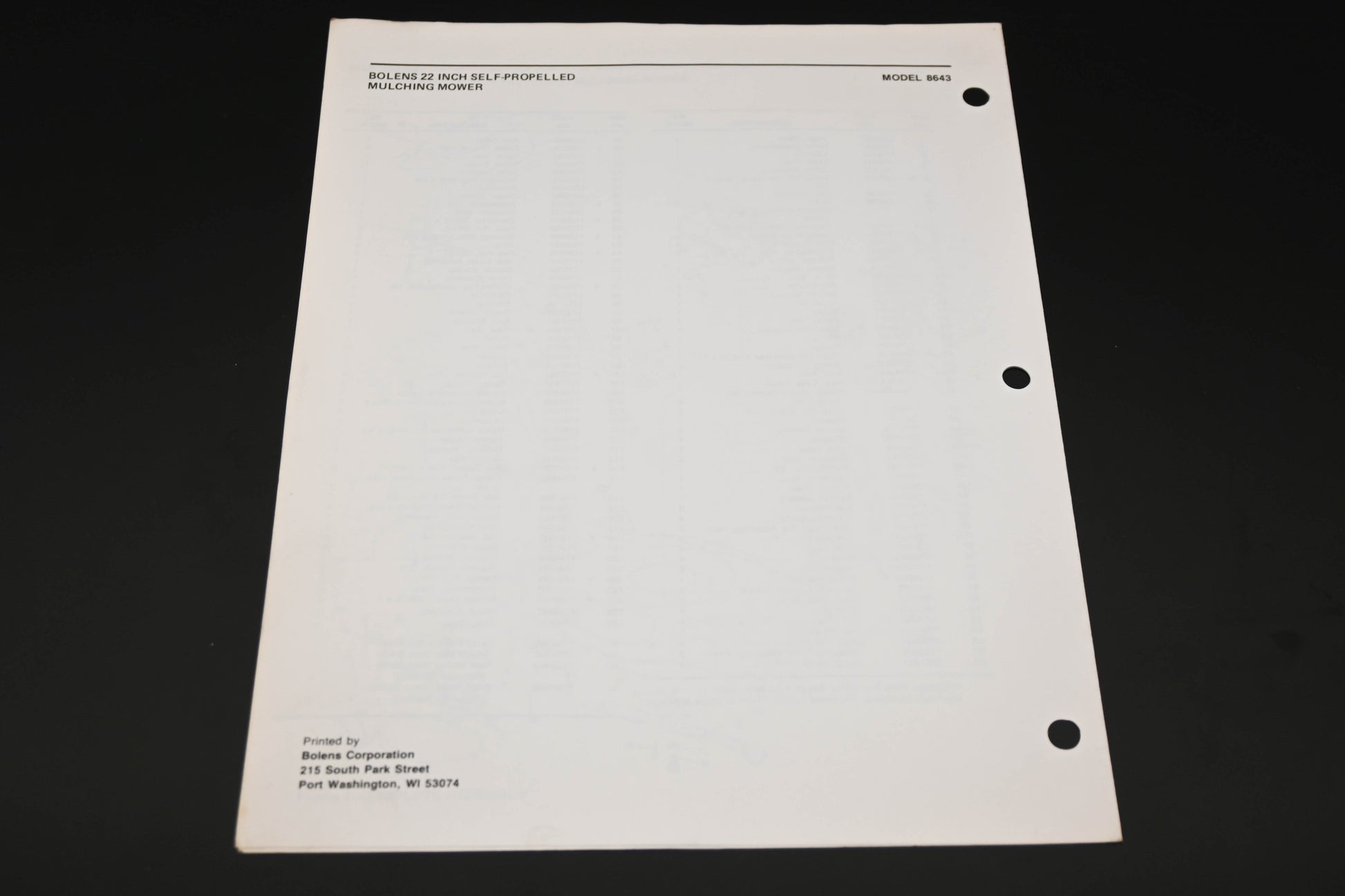 Bolens 3853-1 83 Eliminator Plus 21" Mower Model 8643 Parts List