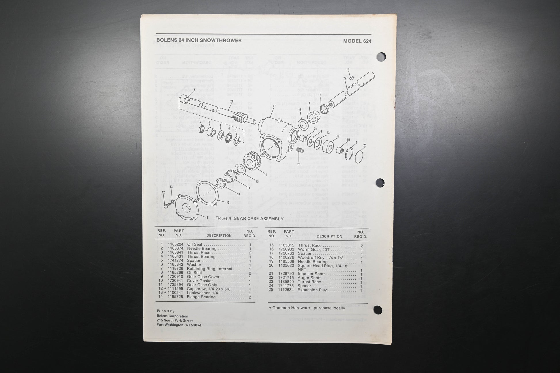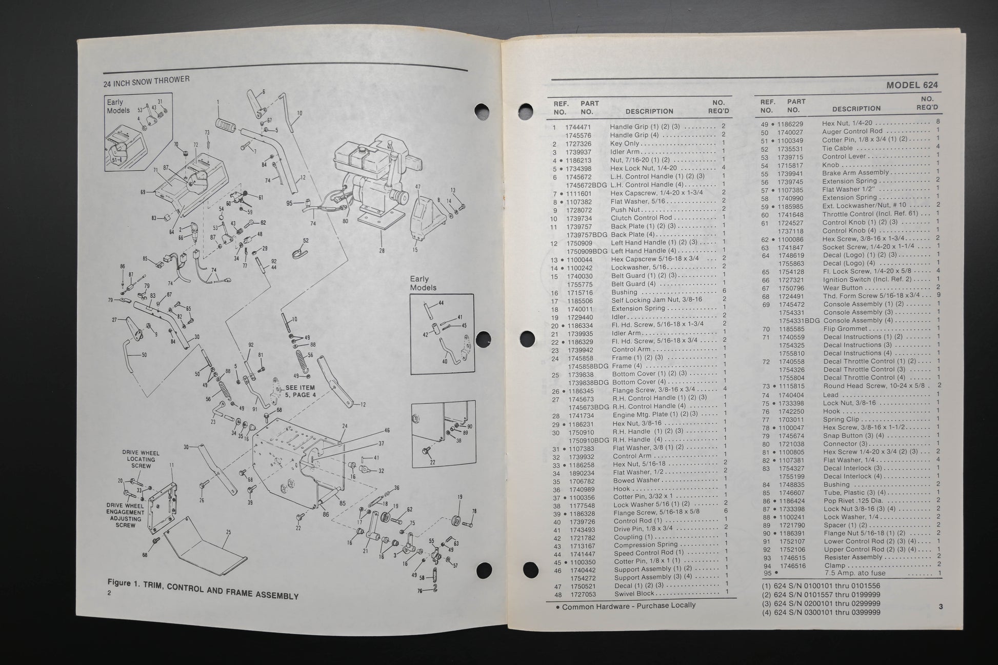 Bolens 4302-1 88 Snow Thrower Models 624 Parts List