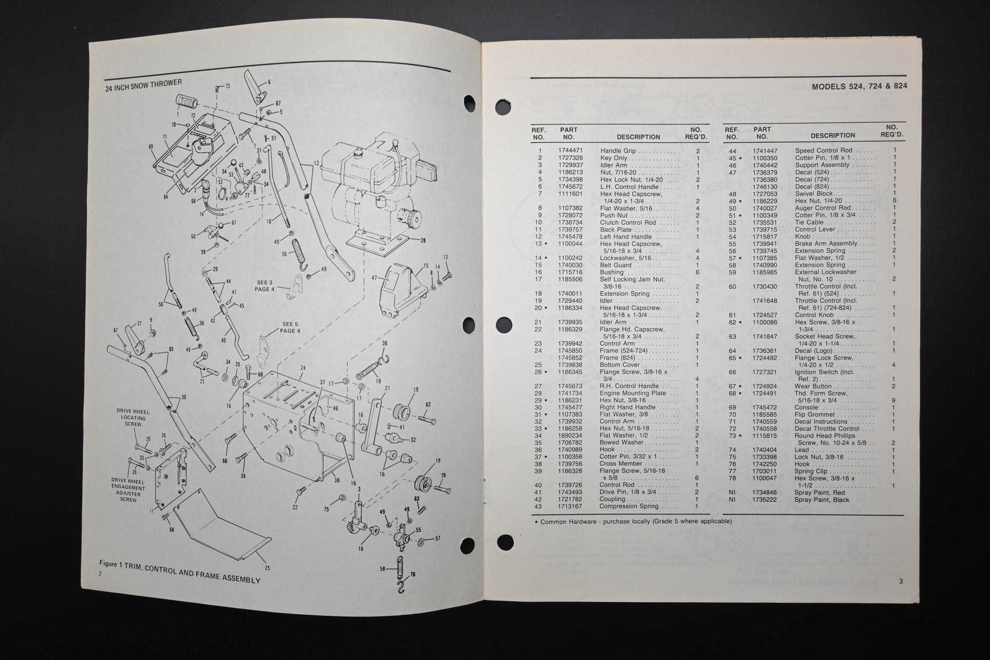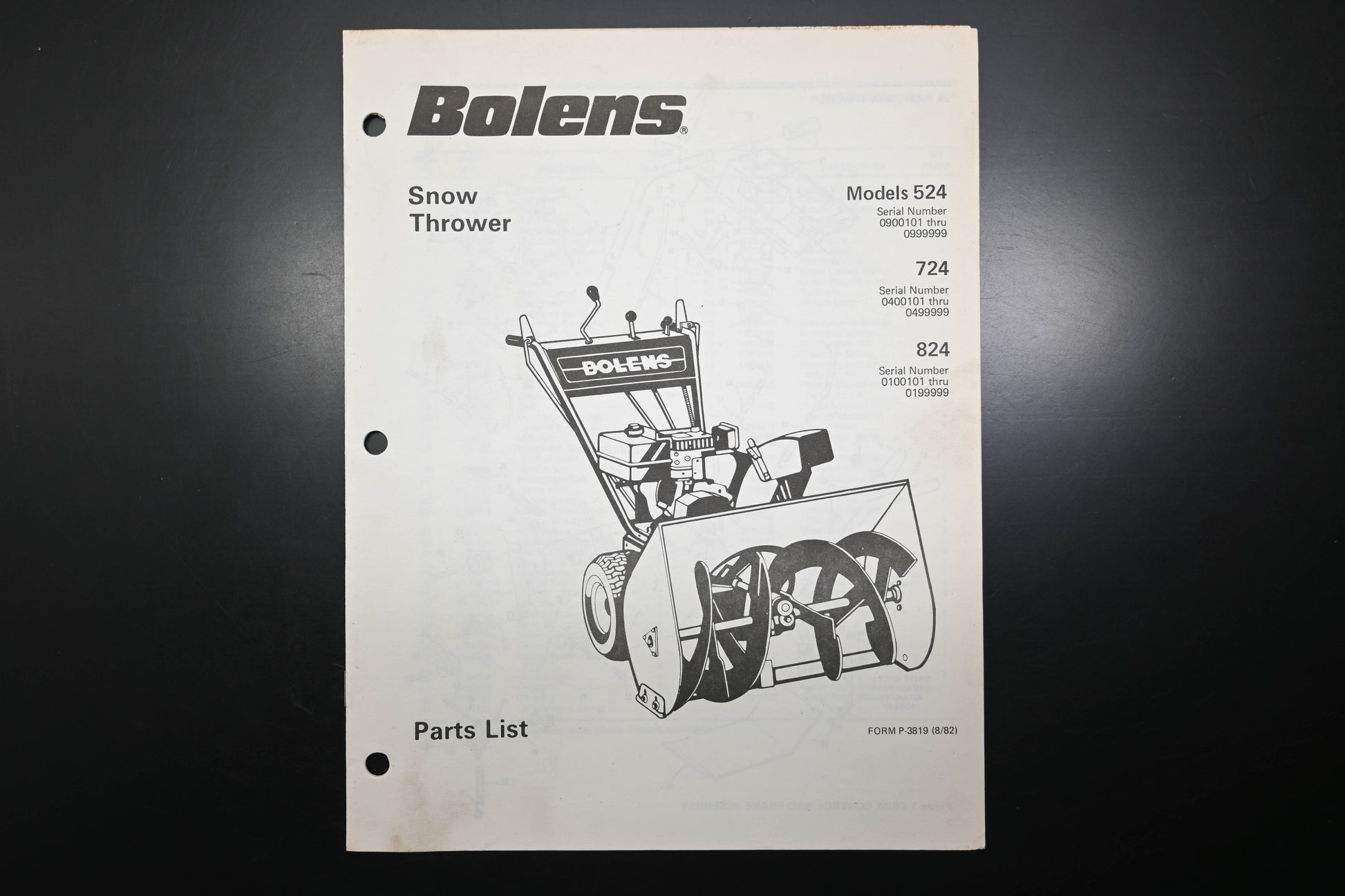 Bolens P-3819 82 Snow Thrower Models 524 724 824 Parts List