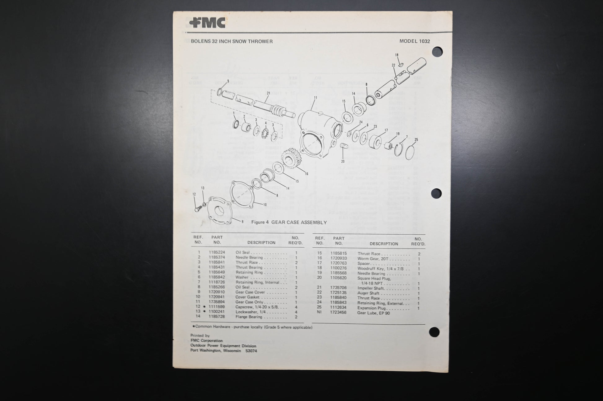 79 Snow Thrower Model 1032 Parts List is used and in good condition, not in original packaging. Shows signs of wear from use. Binding staples rusted and pages discolored from age. Fingerprints present on both covers.