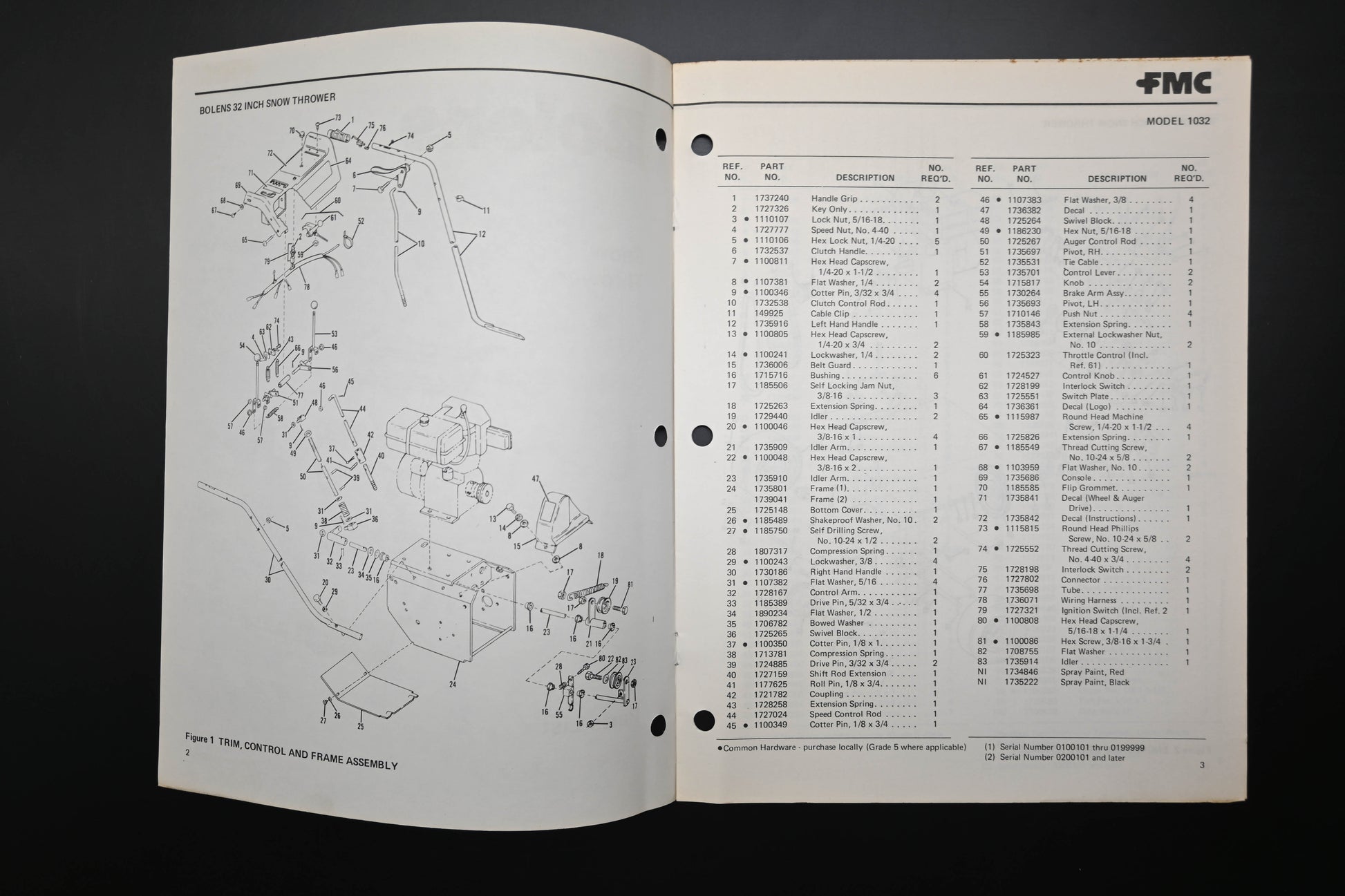 Bolens P553275-1 79 Snow Thrower Model 1032 Parts List