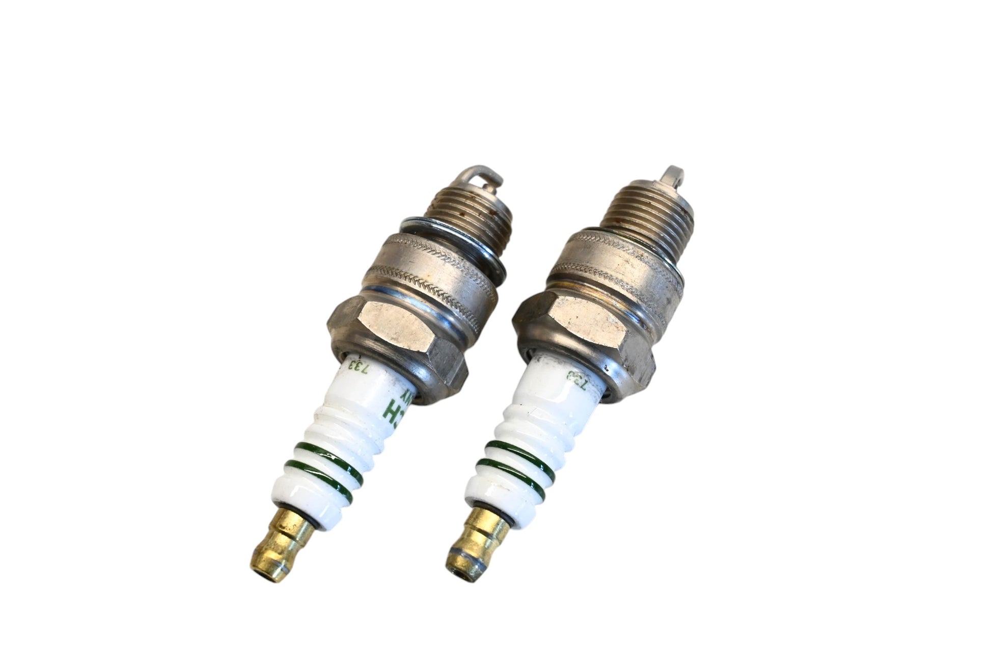 2 Cr-Electrode Spark Plugs are new and in good condition, in original packaging. Shows signs of shelf wear. Rust present.