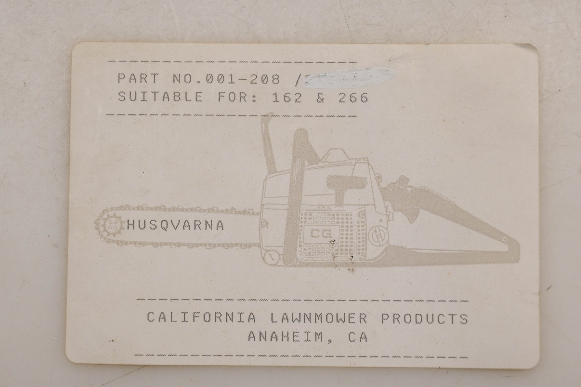 California Lawnmower Products 001-208 Gasket Kit Husqvarna 162 266 Qty 1 NOS