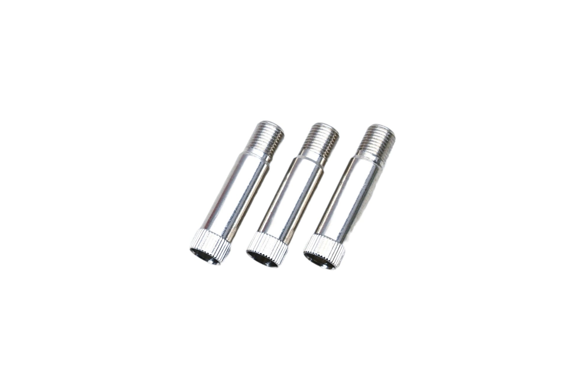 3 Chrome Plated Tubeless Tire Valve Extensions are new and in good condition, not in original packaging. Missing one valve extension. Comes as pictured. 1-1/4" Length.