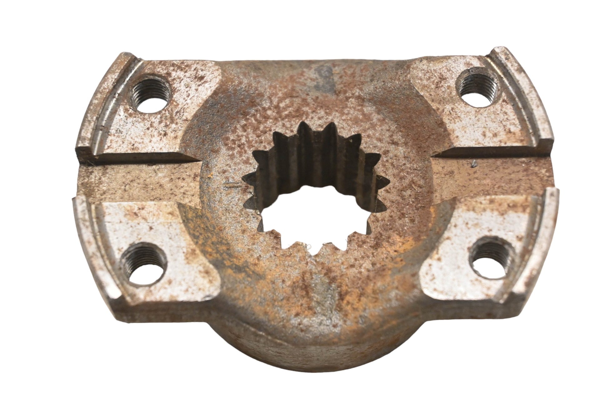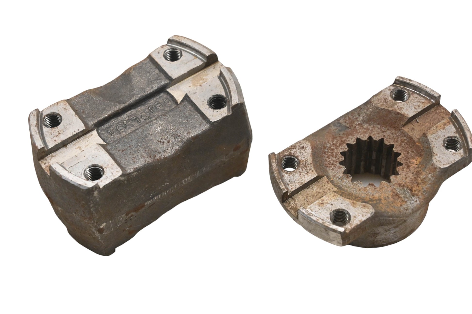 Forklift Yoke & Mount Block is used and in good condition, not in original packaging. Shows signs of shelf wear, rust present. Comes as pictured, no screws.