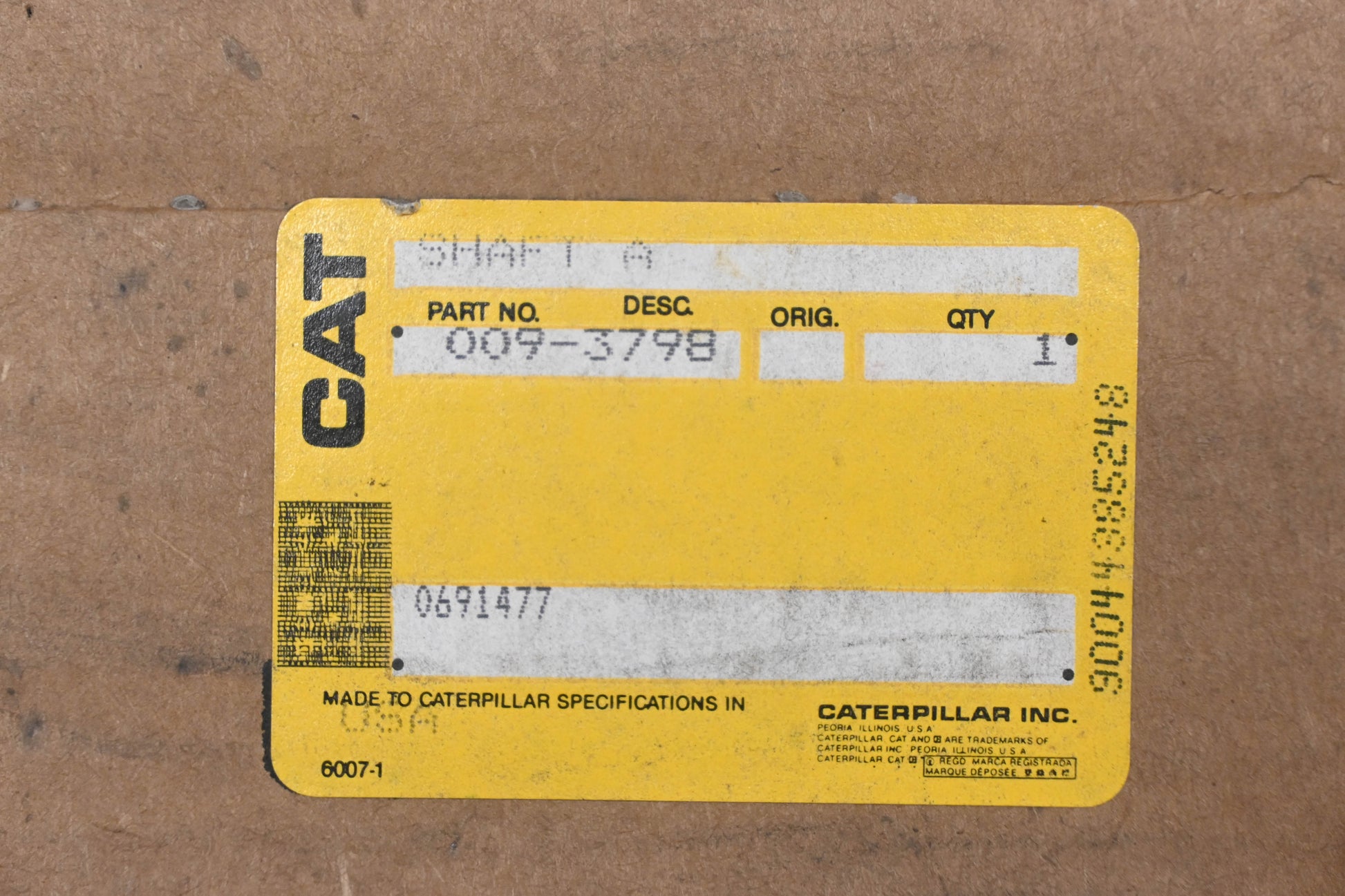 Caterpillar 0093798, 009-3798 Drive Axle Shaft Assembly NOS