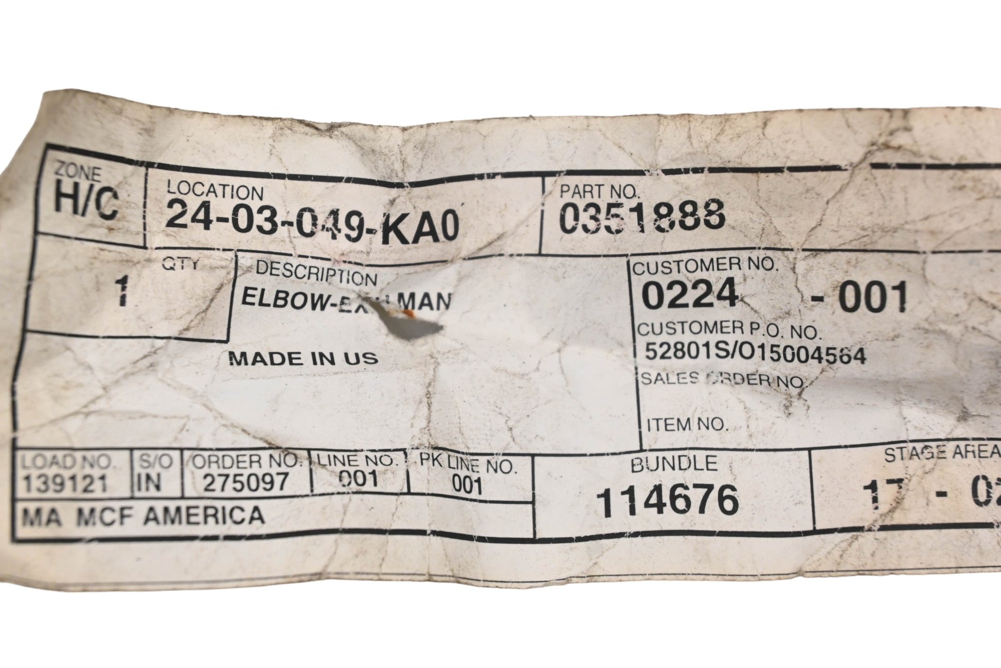 Exhaust Elbow is new and in excellent condition, not in original packaging.