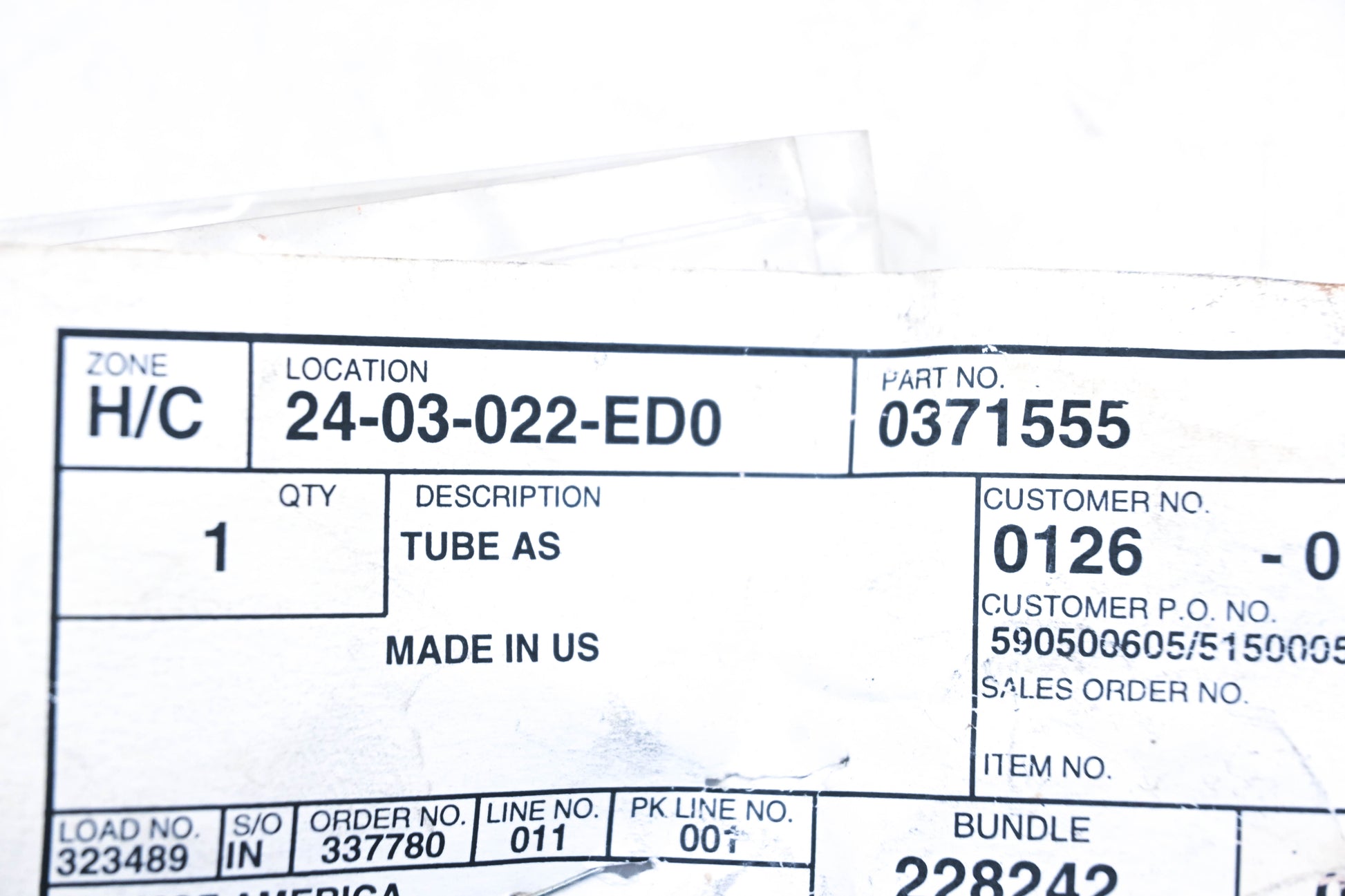 Tube Assembly is new and in good condition, not in original packaging. Shows signs of shelf wear.