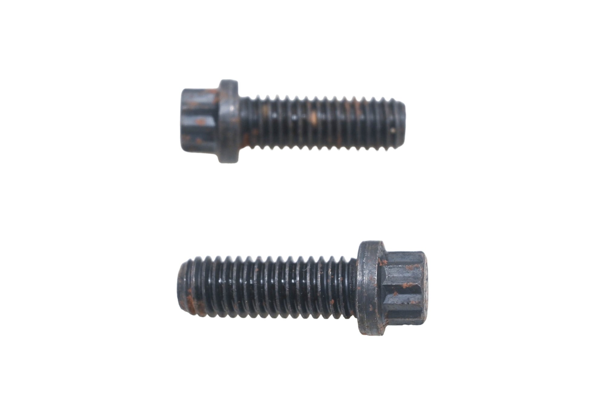 2 12-Point Head Screws are new and in good condition, not in original packaging. Shows signs of shelf wear, rust present.