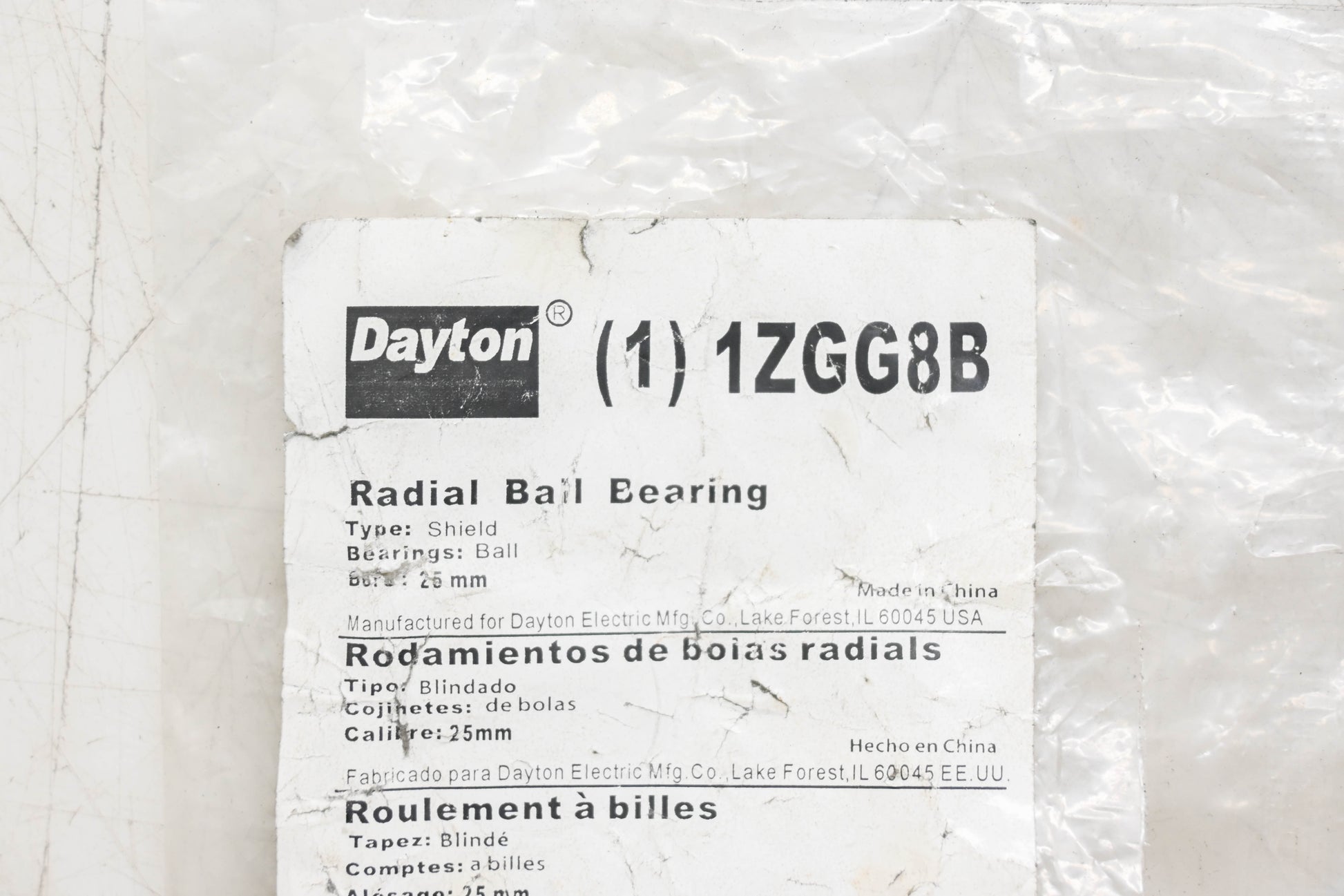 Dayton 1ZGG8B 25mm Radial Ball Bearing NOS
