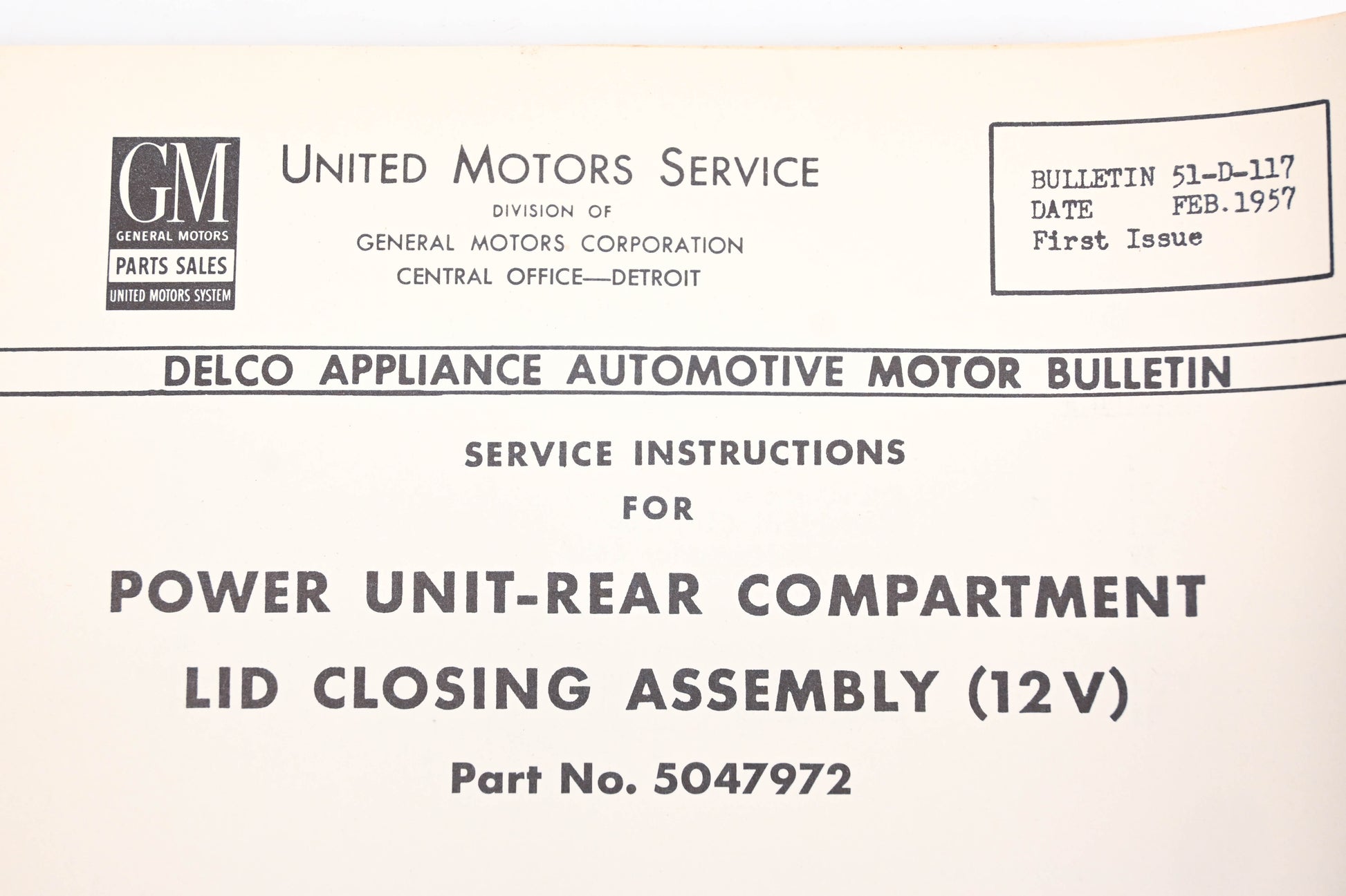 Delco 51-D-117 February 1957 Power Unit Rear Compartment Lid Closing Assembly Service Instructions
