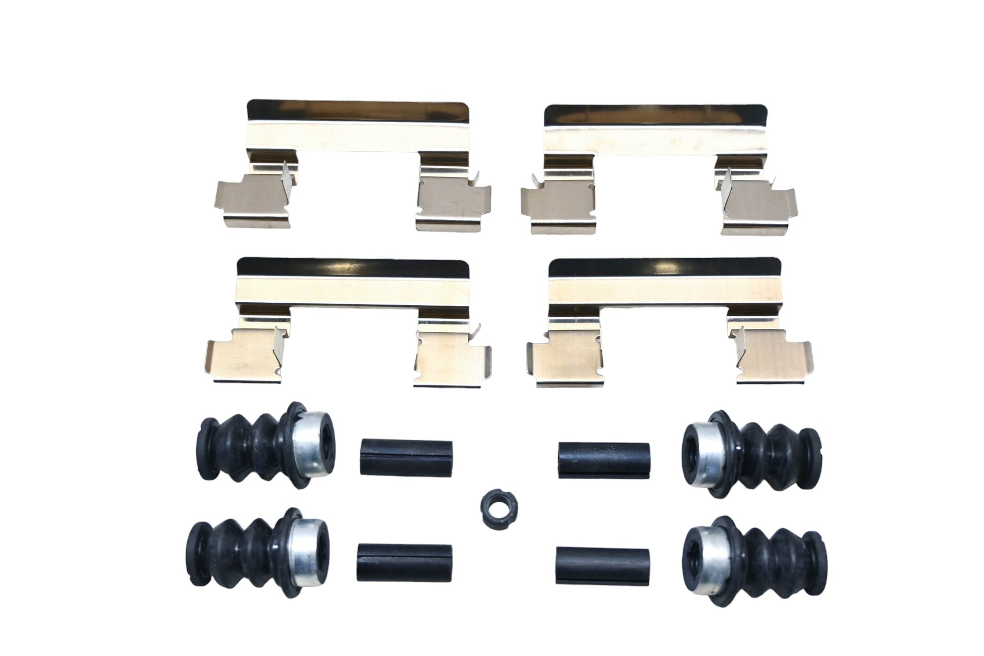 Disc Brake Hardware Kit is new and in good condition, in original packaging. Shows signs of shelf wear. Kit is incomplete, missing one small bushing.