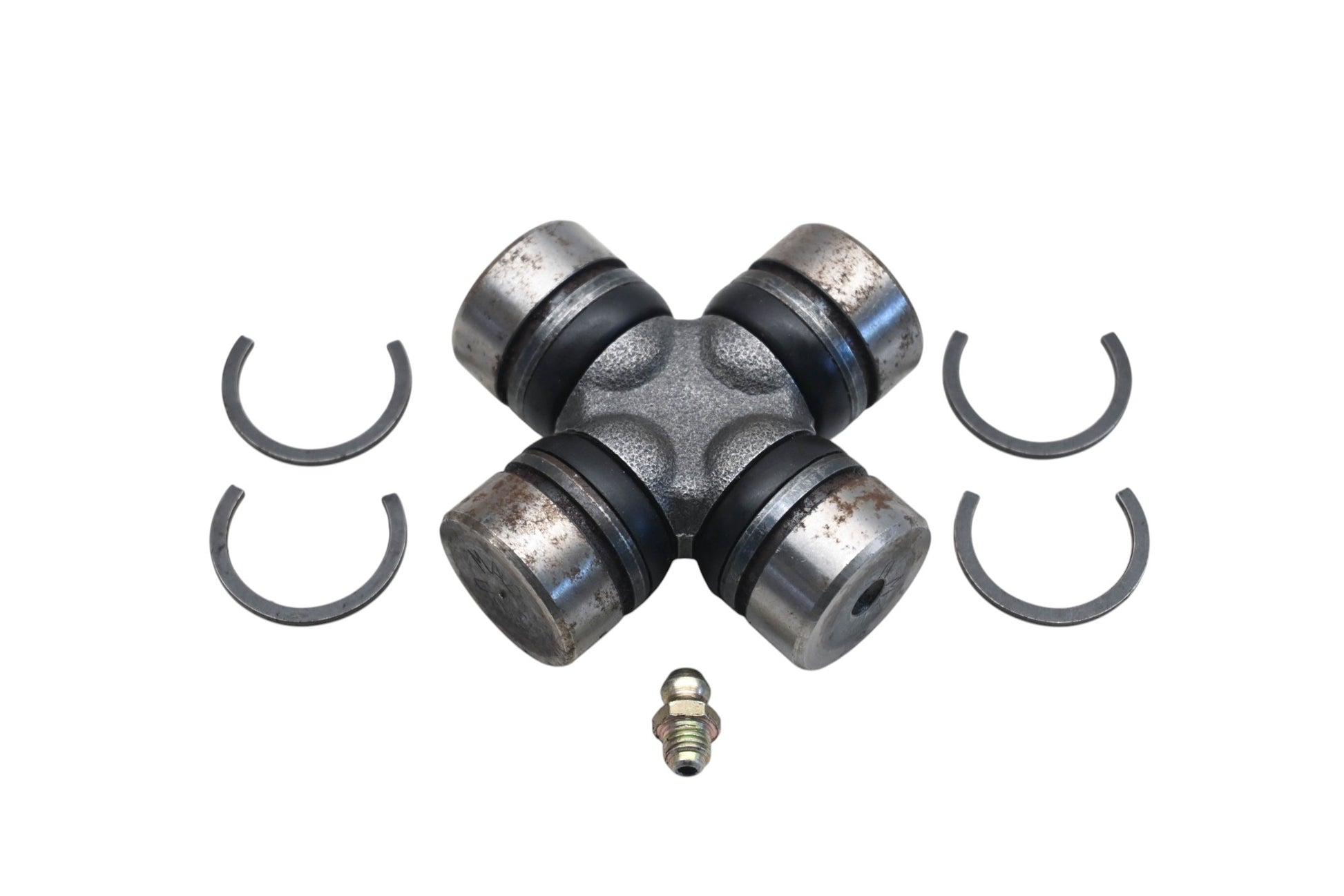 U-Joint is new and in good condition, in original packaging. Shows signs of shelf wear. Rust present.