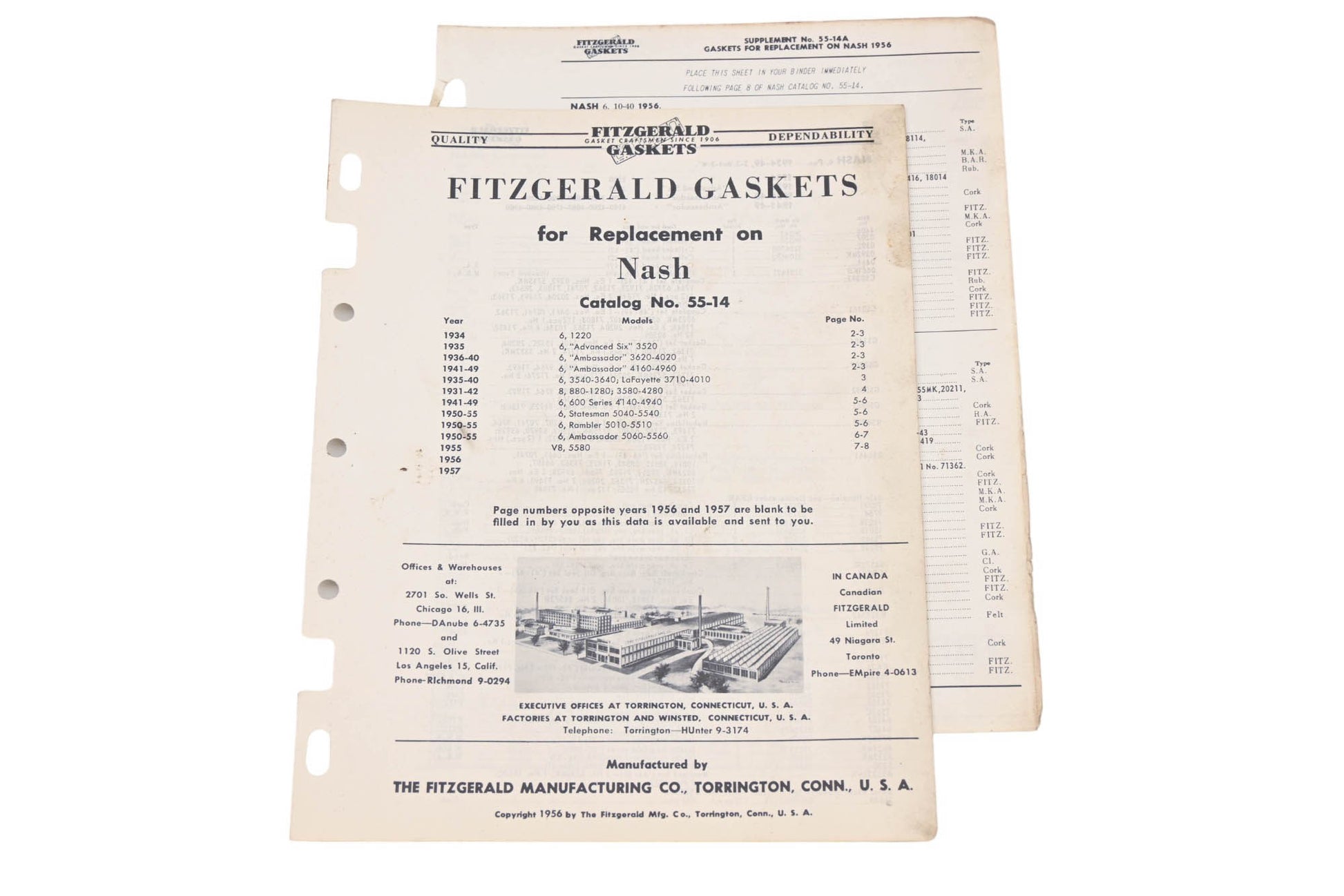 Fitzgerald 55-14, 55-14A Nash Replacement Gaskets Catalog