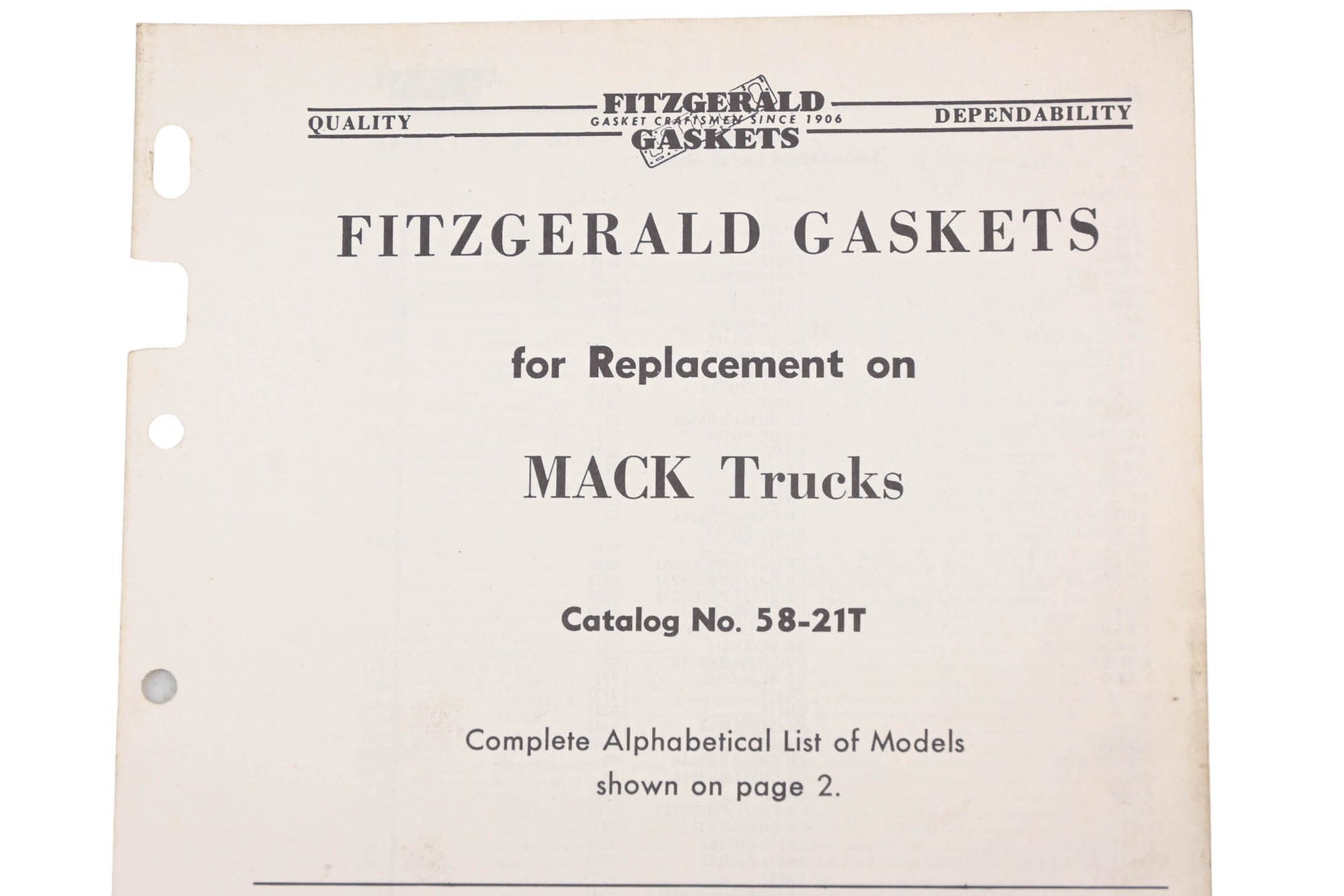 Fitzgerald 58-21T Mack Trucks Replacement Gaskets Catalog