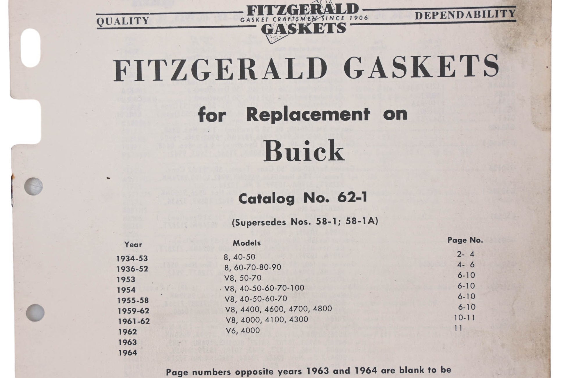 Fitzgerald 62-1 Buick Replacement Gaskets Catalog