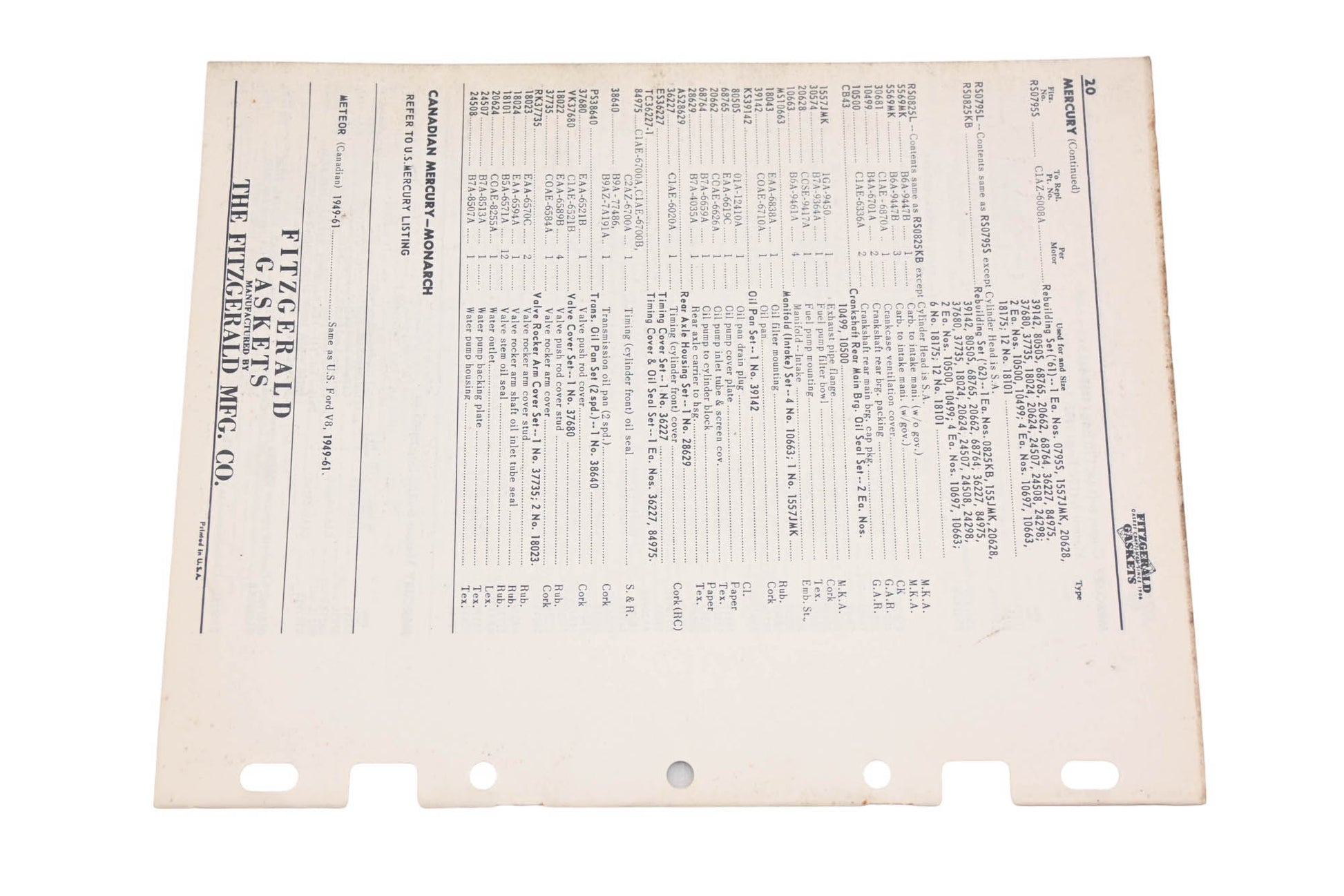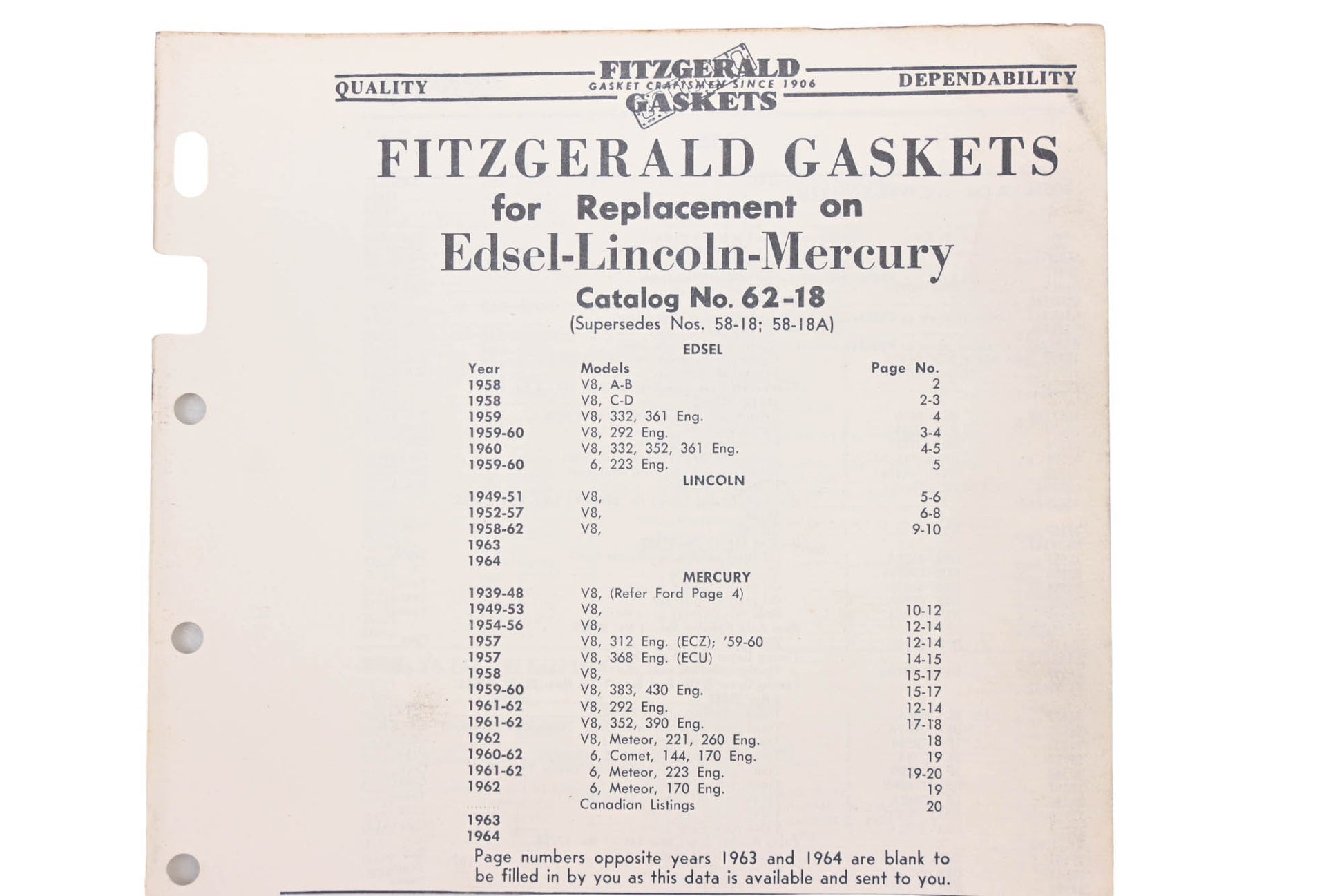 Fitzgerald 62-18 Edsel Lincoln Mercury Replacement Gaskets Catalog