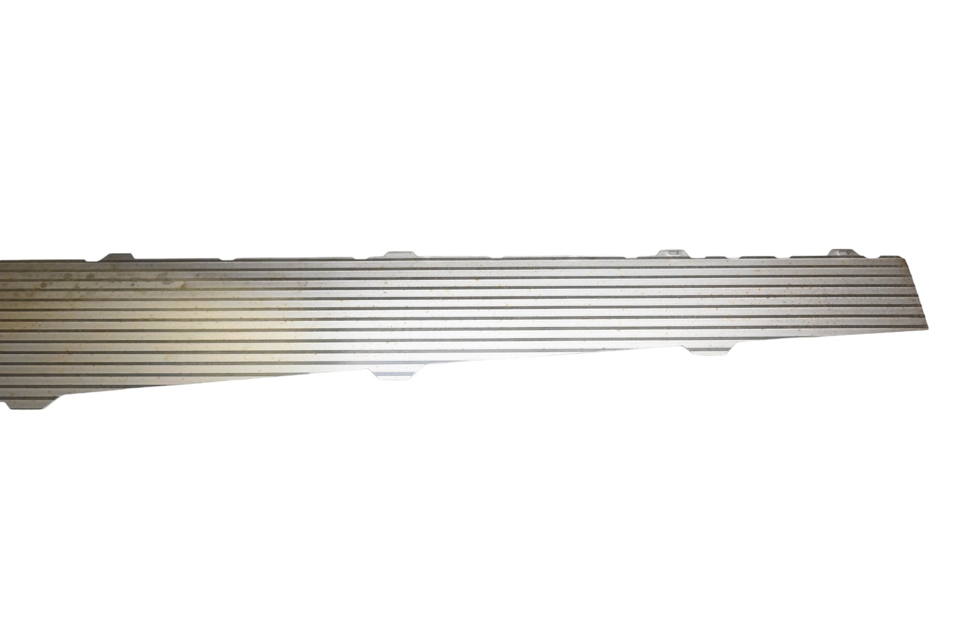 Chevrolet Bel Air Right Tail Side Moulding is new and in good condition, not in original packaging. Shows signs of shelf wear, dirty and sticker glue residue. Panel is straight.