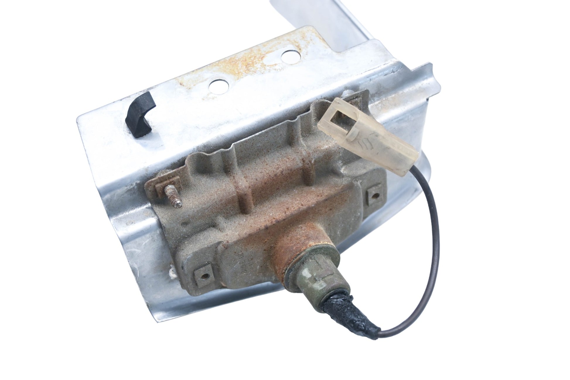 1967 Cadillac Rear Tilt License Plate Bracket Assembly is used and in good condition, not in original packaging.