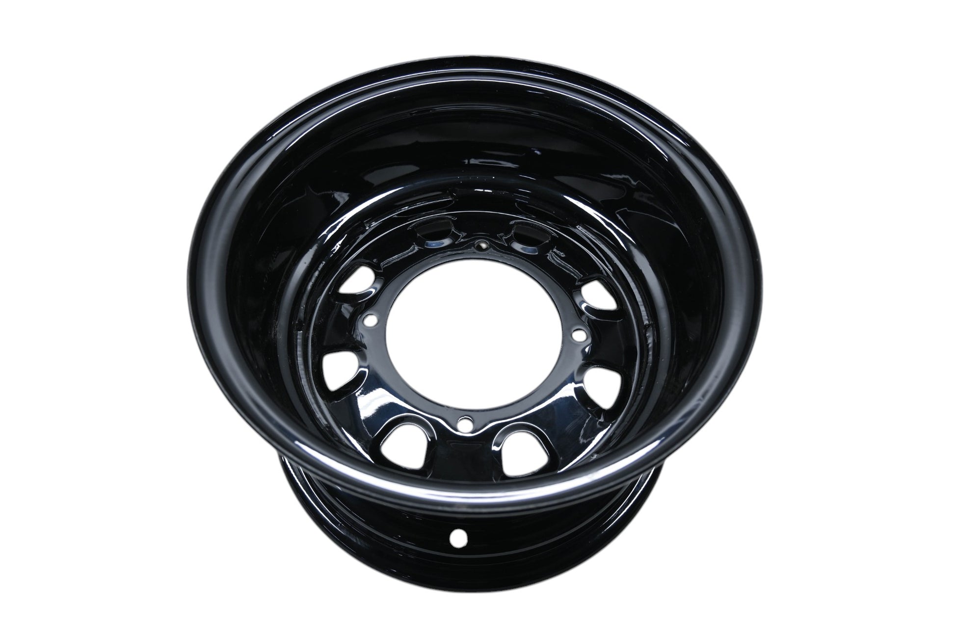 Delta Black Steel Wheel 12x7 4+3 4/156 is new and in good condition, not in original packaging. Shows signs of shelf wear.