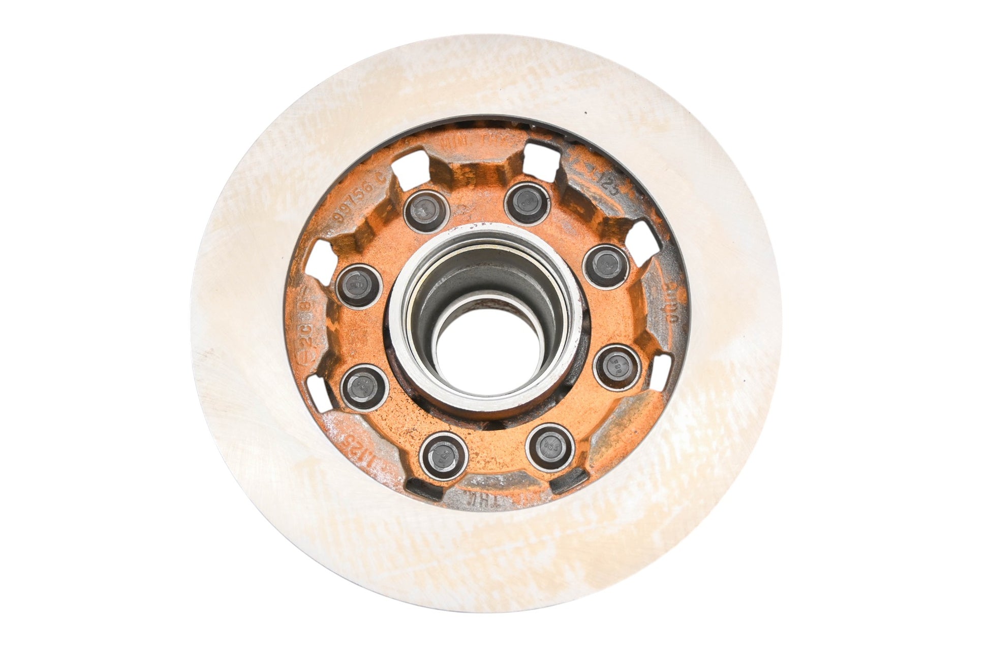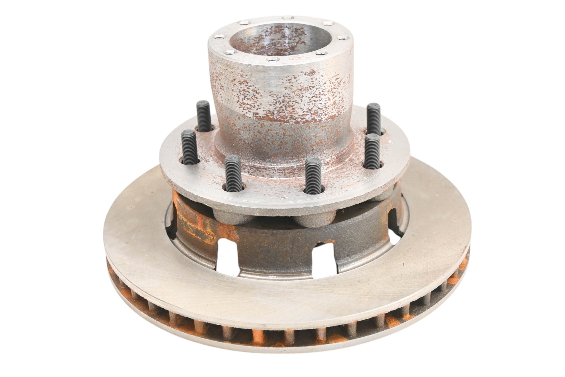 Brake Rotor Hub Assembly is new and in good condition, not in original packaging. Shows signs of shelf wear, rust present.