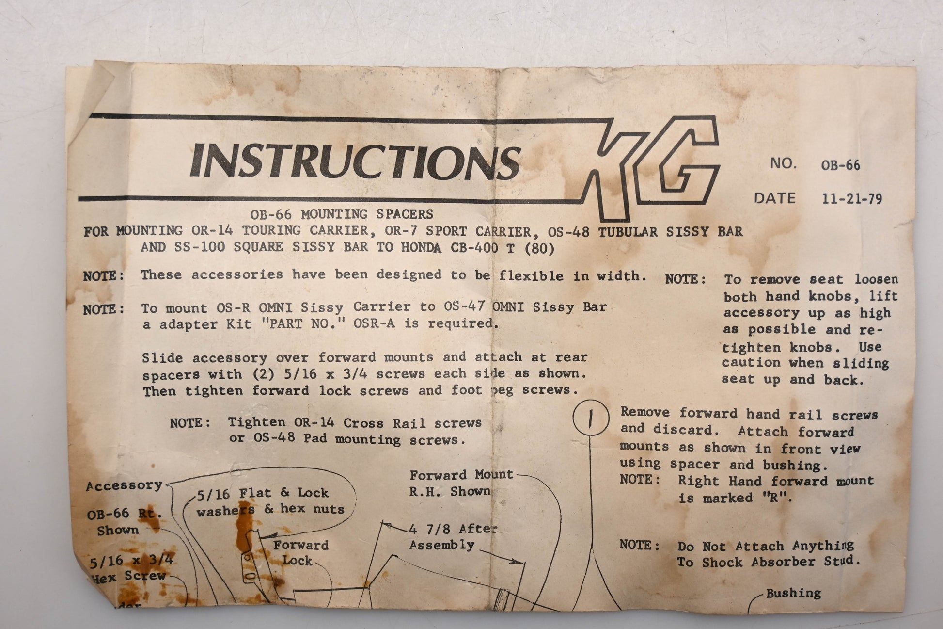 KG 0B-66 Mounting Spacer Kit Fits Honda CB-400 T (80) Qty 1 NOS