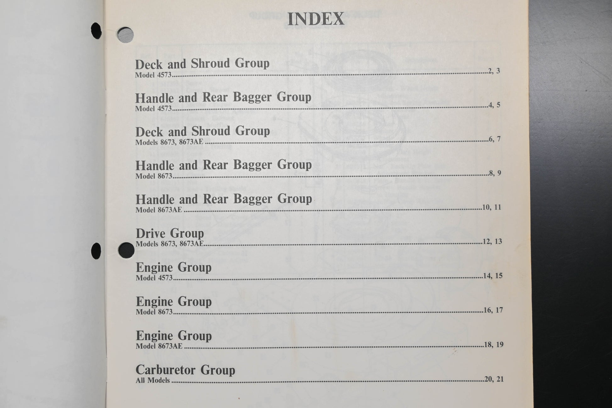Mulch-R-Catch 4573 8673 Parts Manual is used and in good condition, not in original packaging. Shows signs of wear from use. Pages discolored & binding staples are rusted. Fingerprints & small stains present throughout.