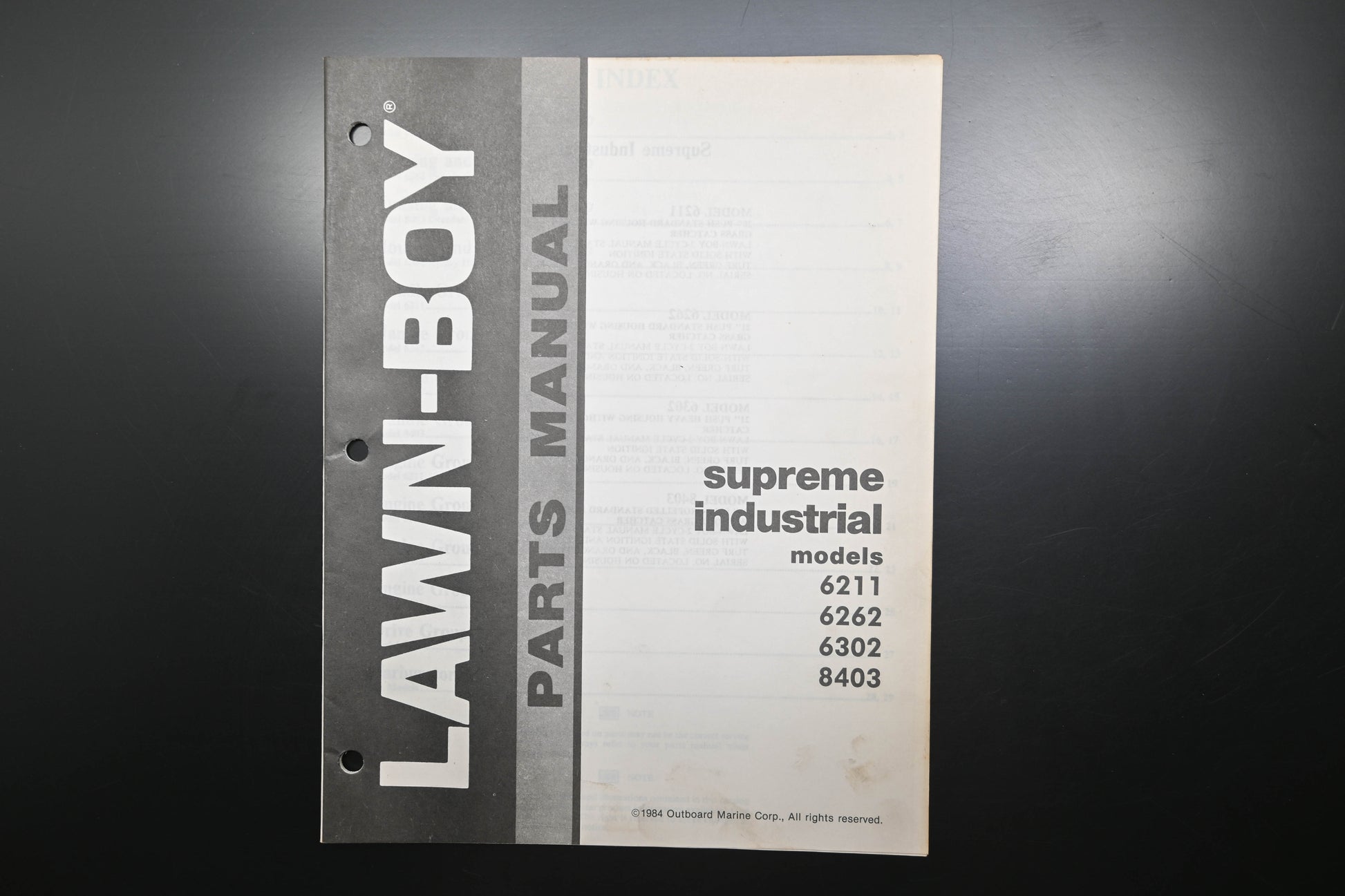 Supreme 6211 6262 6302 8403 Parts Manual is used and in good condition, not in original packaging. Shows signs of wear from use. Pages discolored & binding staples are rusted. Fingerprints present on both covers.