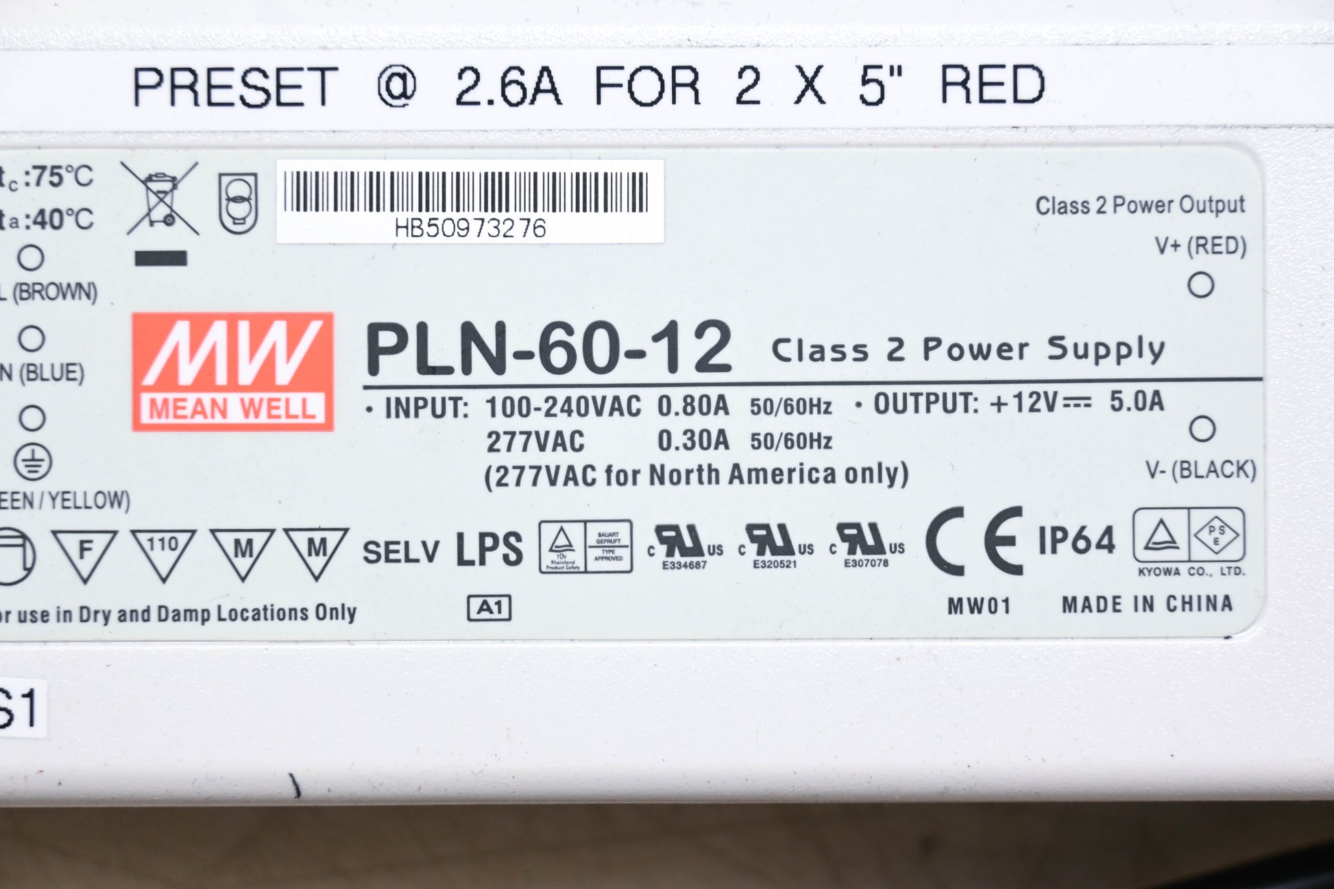 Mean Well PLN-60-12 Power Supply NOS